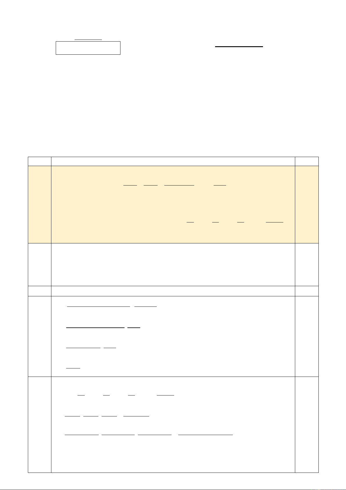 (2 +1)(2 −1) (3 −1)(3 +1) (4 −1)(4 +1) (2024 −1)(2024 +1) = . . ... 2 2 2 2 2 3 4 2024 2 Bài Đáp án Điểm 3.1 2.4 3.5 2023.2025 = . . ... 2.2 3.3 4.4 2024.2024 1.2.3...2023 3.4.5...2024.2025 = . 2.3.4...2023.2024 2.3.4...2024 1 2025 = . 2024 2 0,5 2025 = 4048 2025 Thay x = vào A, ta được: 4048 2025 2025 − 4048 −1 4048 4048 A = = 2025 2025 + 8096 + 2 4048 4048 2023 − 2023 4048 = = − 0,5 10121 10121 4048 2 x − 2x + 2025