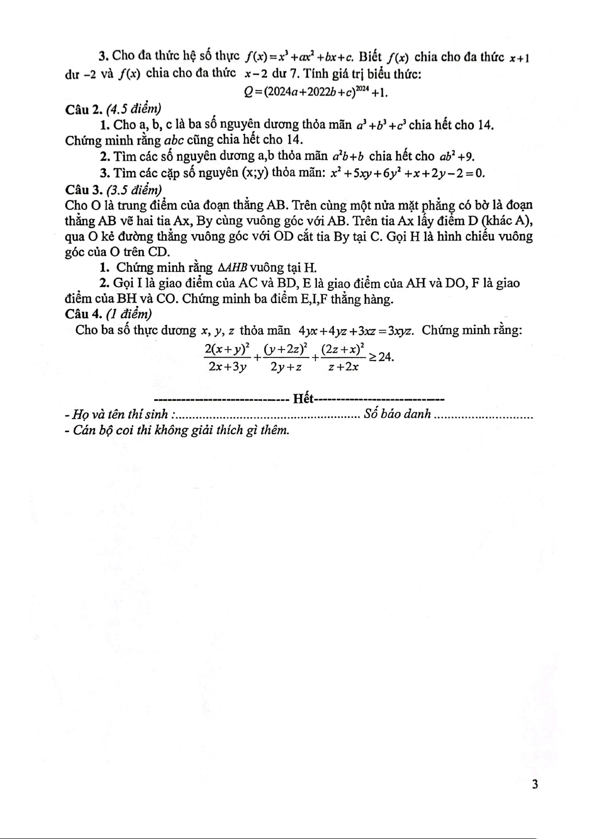 Đề thi Olympic Toán 8 năm 2023 – 2024 phòng GD&ĐT Thạch Thất – Hà Nội