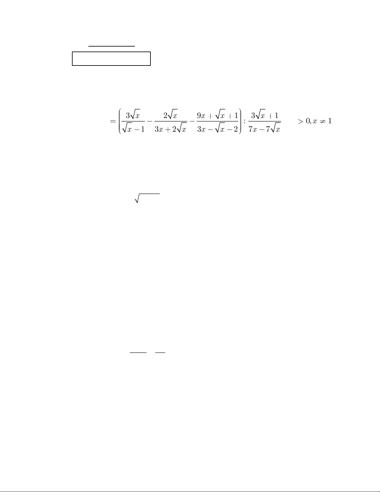 Tính giá trị của biểu thức 2024 2024 2024 B = x + y + z + xyz . 3 x 2 9x x 1 3 x 1 P : x 1 3 x 2 x 1 3 x 2 7x 7 x 1a 3 x 3 x 2 2 x 1 9x x 1 7 x x 1 . 0,5 x 1 3 x 2 3 x 1 3 x 1 7 x 7 x . 1,0 3 x 2 3 x 1 3 x 2 7 x x 0,x 1 x 0 0,25 P 0 3 x 2 7 x 7 14 7 P 3 x 2 3 3 3 3 x 2 0,25 1b