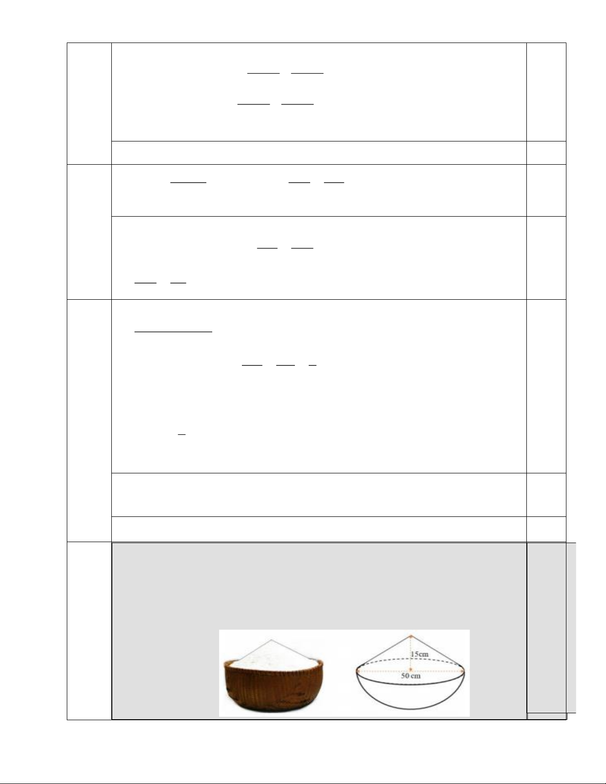 2) Cho hình bên là một thúng gạo vun đầy. Thúng có dạng nửa hình cầu với đường kính 50 , cm