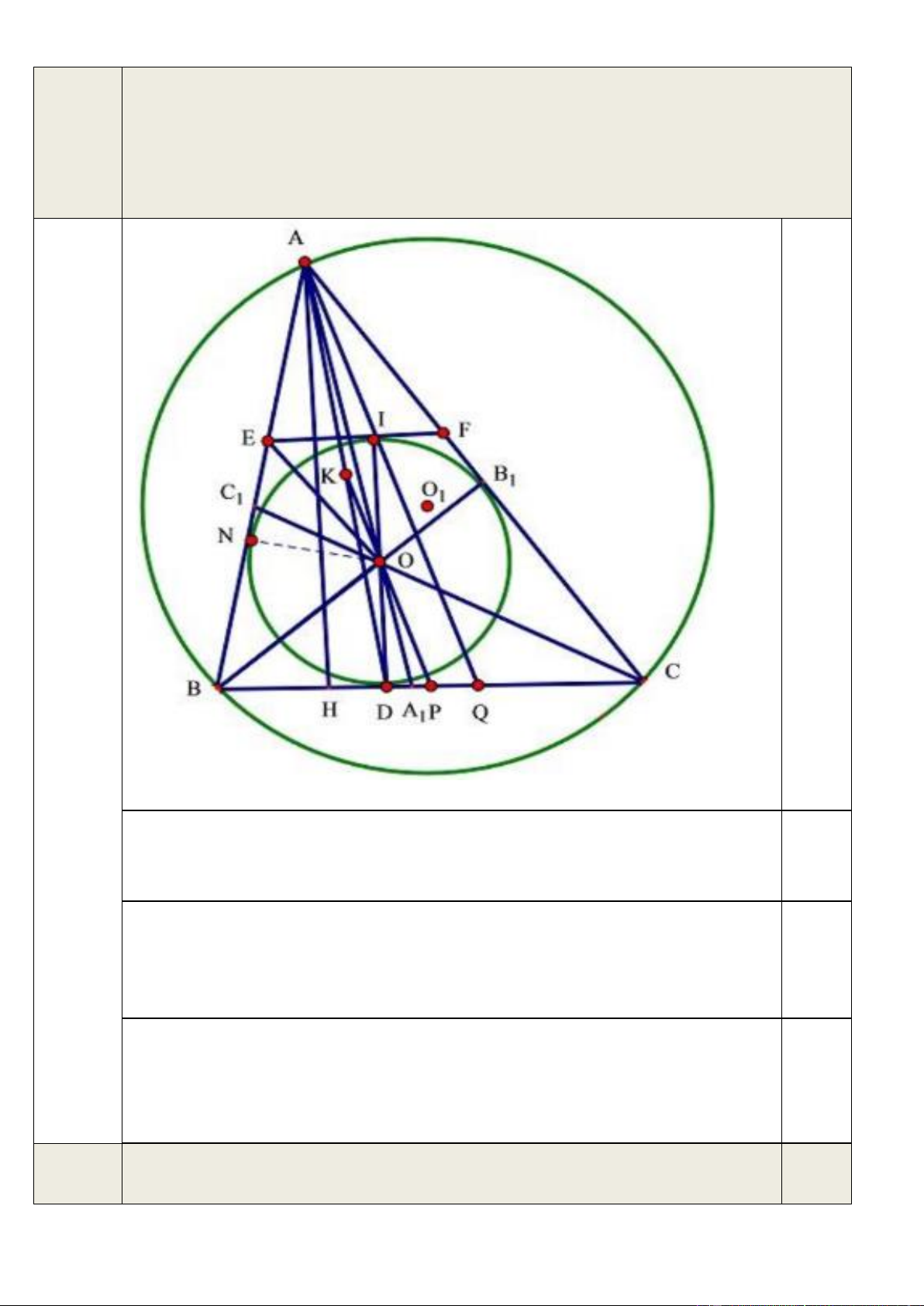 AC, C là giao điểm của CO với cạnh AB và (O ; R là đường tròn ngoại tiếp 1 1 ) 1 1,5 điểm 1 1 1 2 ABC. Chứng minh + + . AA BB CC R − OO 1 1 1 1 1 A O OD S