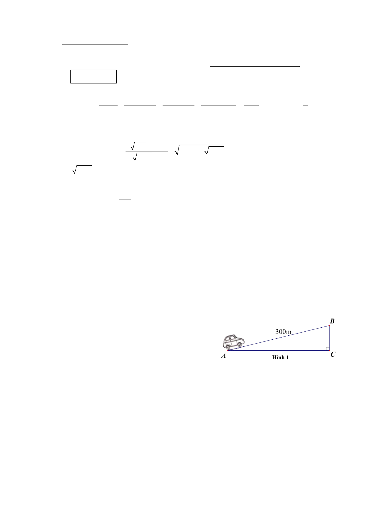 nước biển. Hỏi sau khi lái xe lên dốc được quãng đường 300m (vị trí B) thì vị trí này cao bao nhiêu