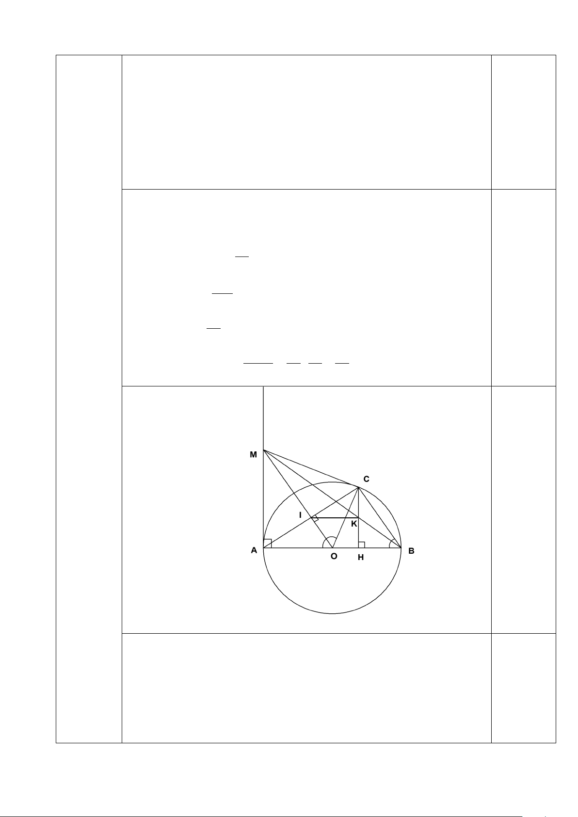 Mà M ∈OI ⇒ MA = MC 0,5 Trang 6/7 OA = OC Xét OA ∆ M và OC ∆ M có O M chung MA = 1,0 MC Vậy OA ∆ M = OC ∆