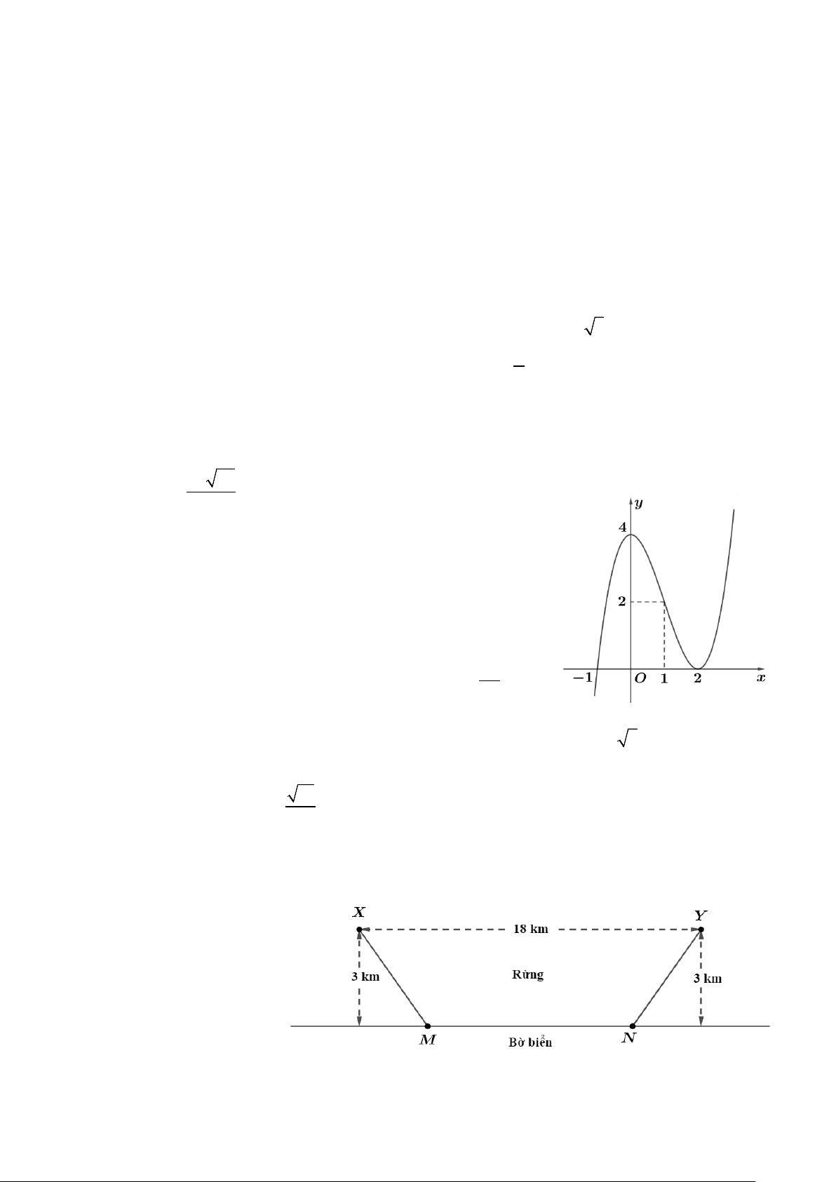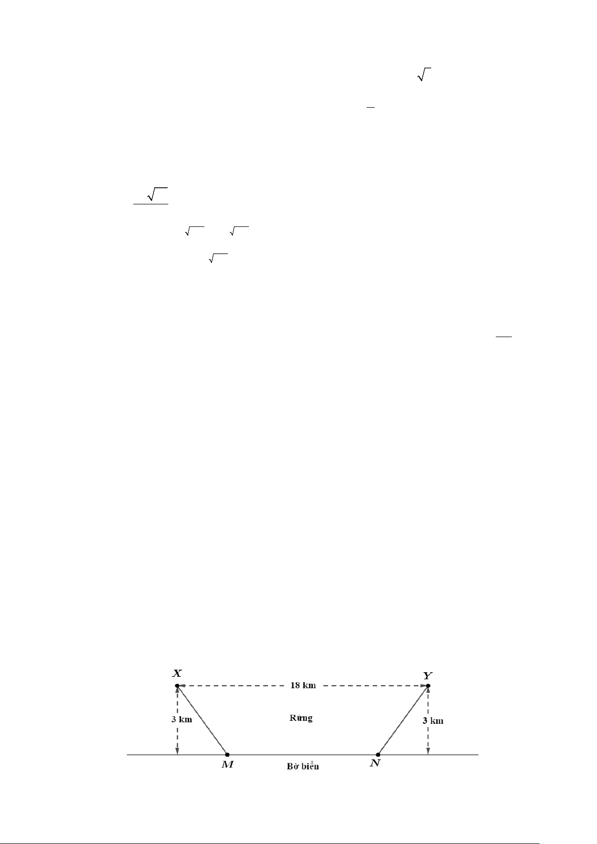 Câu 2: Trong rừng, có hai điểm du lịch ở vị trí X và Y đều cách bờ biển một khoảng bằng 3 km (coi