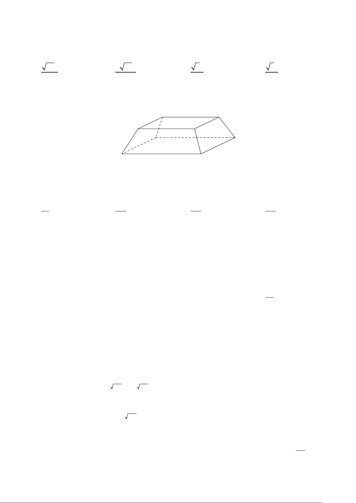 Câu 8: Người ta dự định làm một hầm rượu có dạng hình chóp cụt đều có hai cạnh đáy là 7 m và 5 m ;
