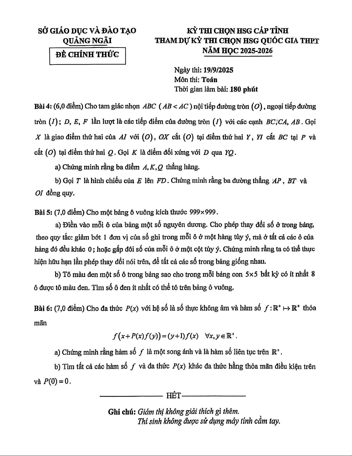 Đề chọn HSG tỉnh dự thi QG môn Toán THPT năm 2025 – 2026 sở GD&ĐT Quảng Ngãi