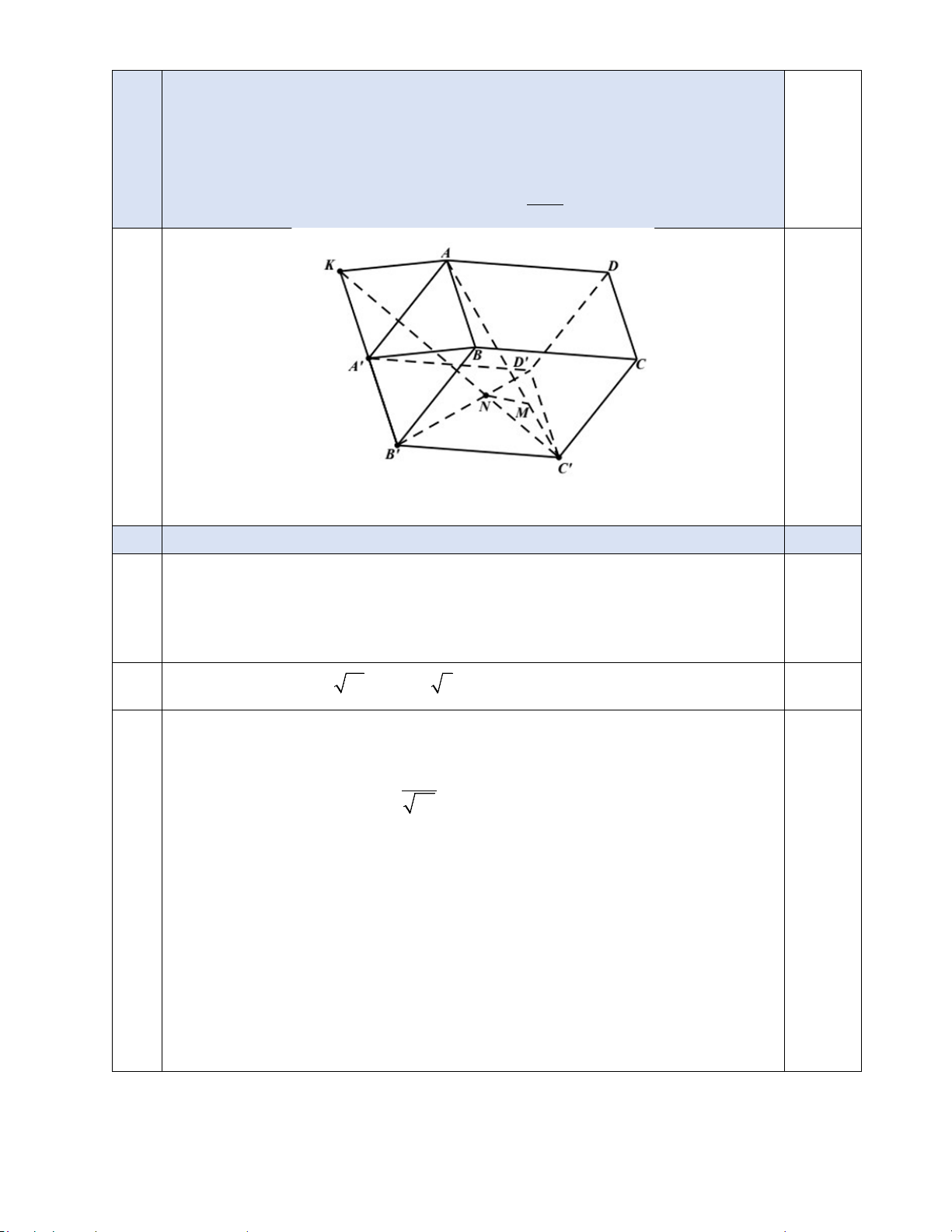 - Tính độ dài AC’, B’D’ 0,25 - Tính tích vô hướng - Tính cosin, kết luận
