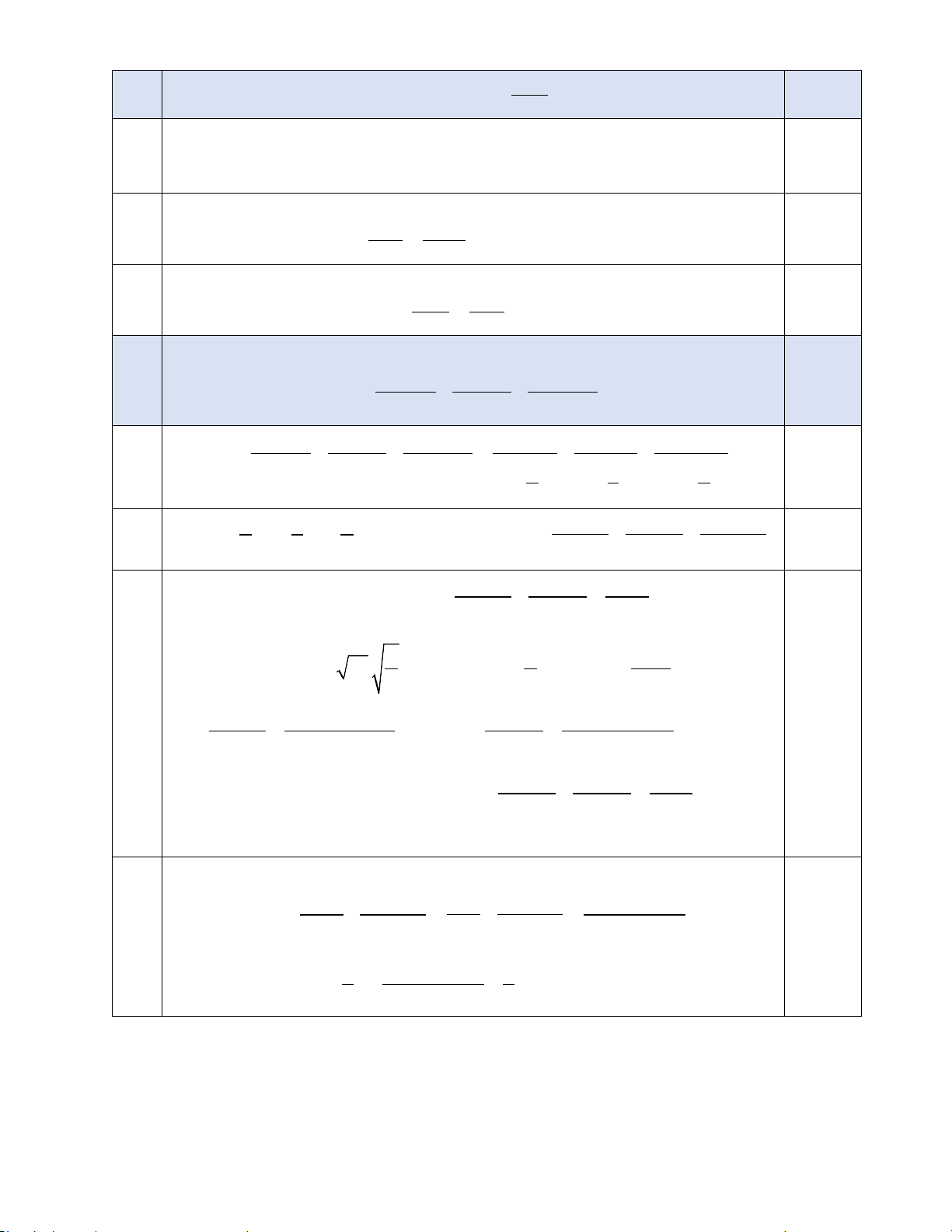 cách giải khác mà đúng vẫn được điểm tối đa. Thang điểm chia theo tỉ lệ tương ứng với mức điểm 0,25 điểm/bước.