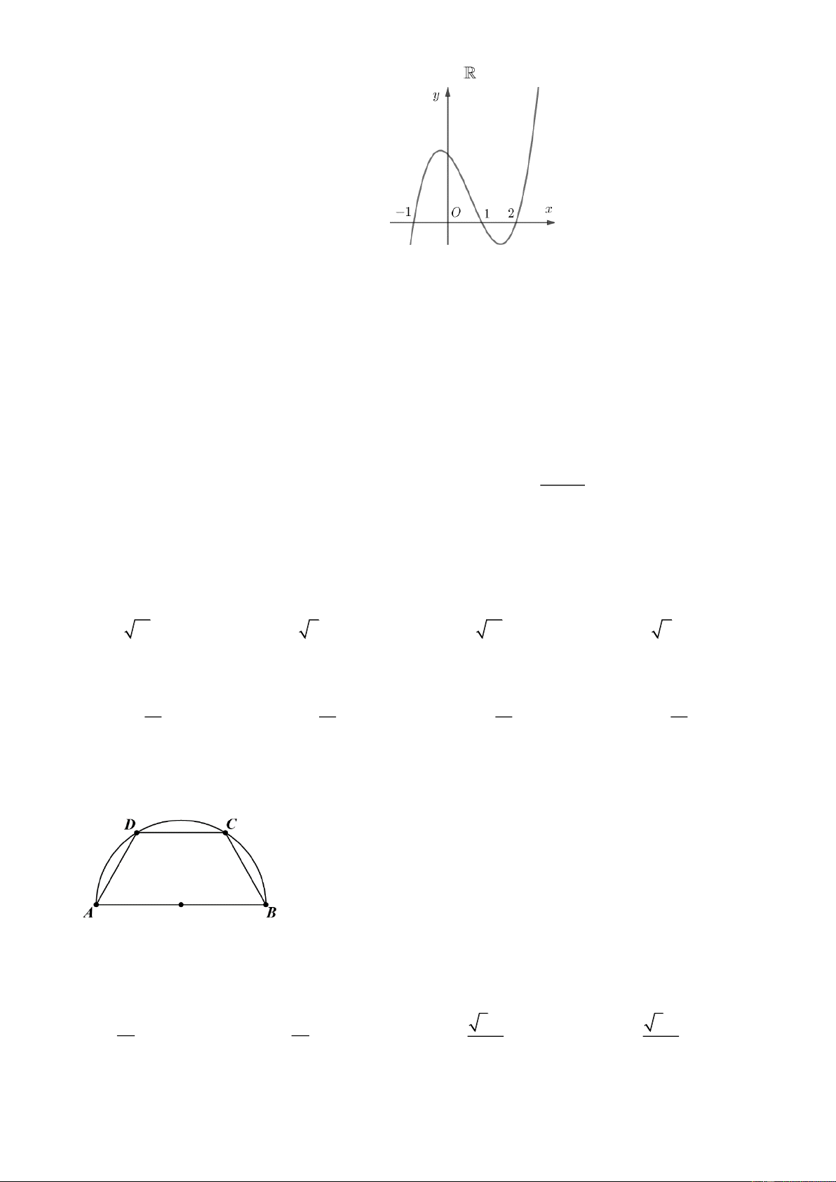 Câu 15: Đồ thị của hàm số nào dưới đây có dạng như đường cong trong hình bên?