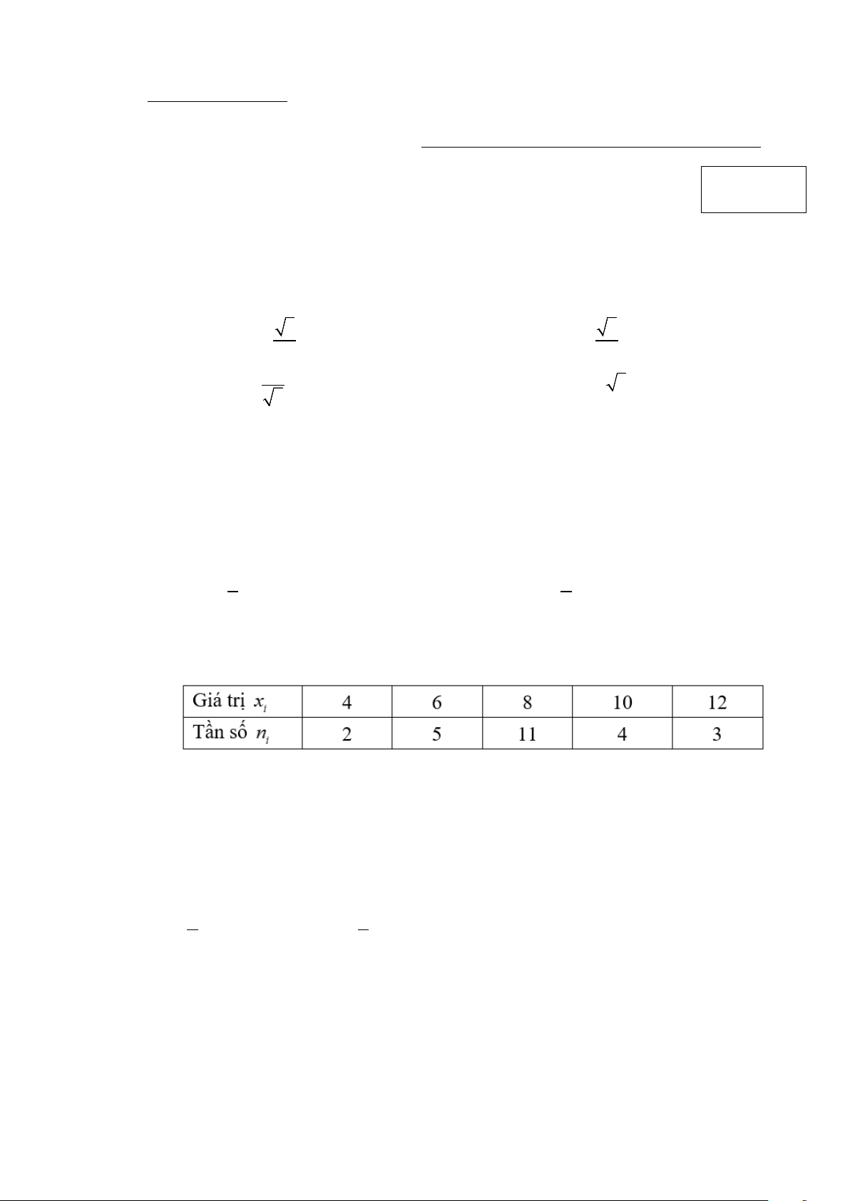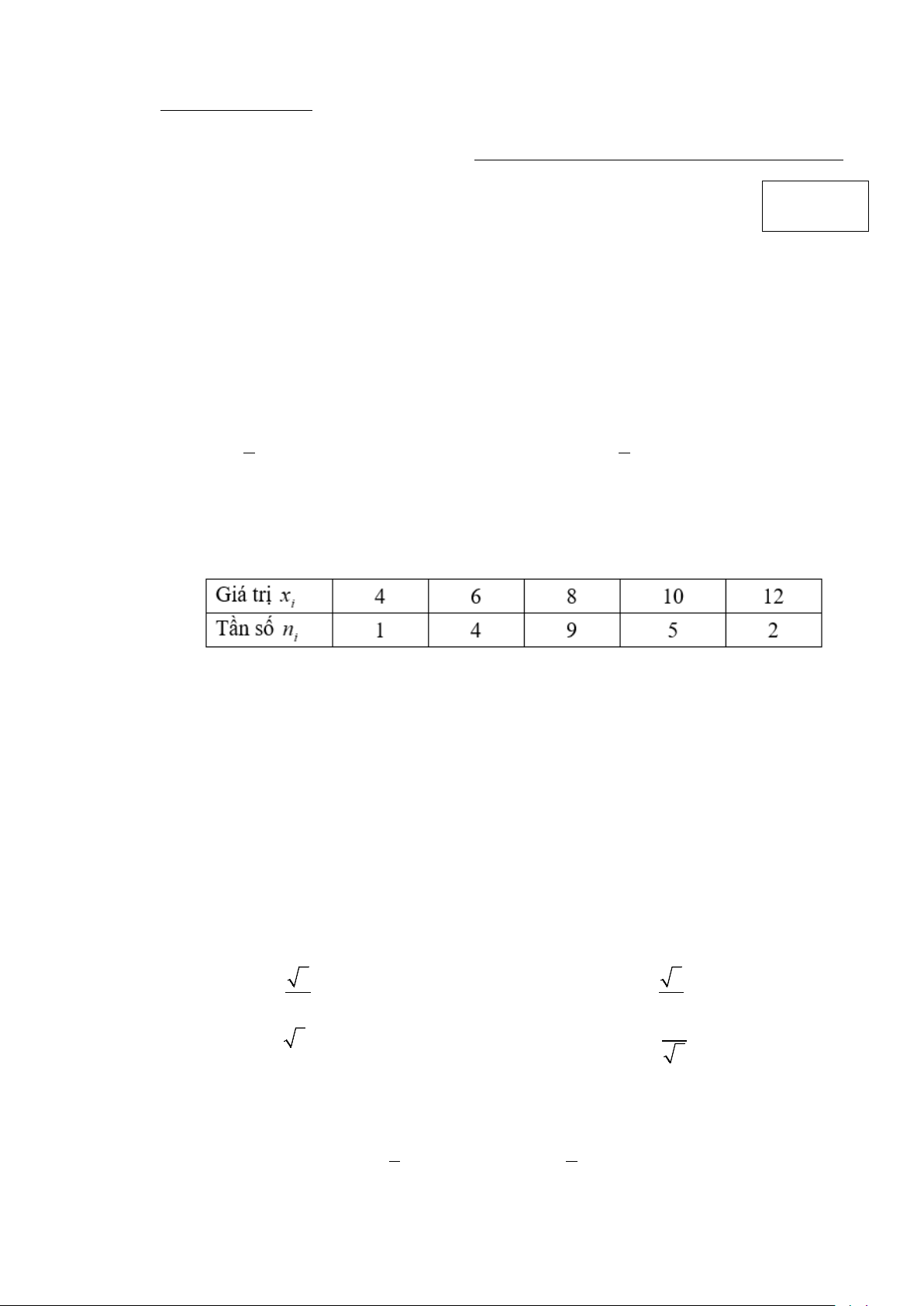 Câu 6. Cho mẫu số liệu như bảng sau: