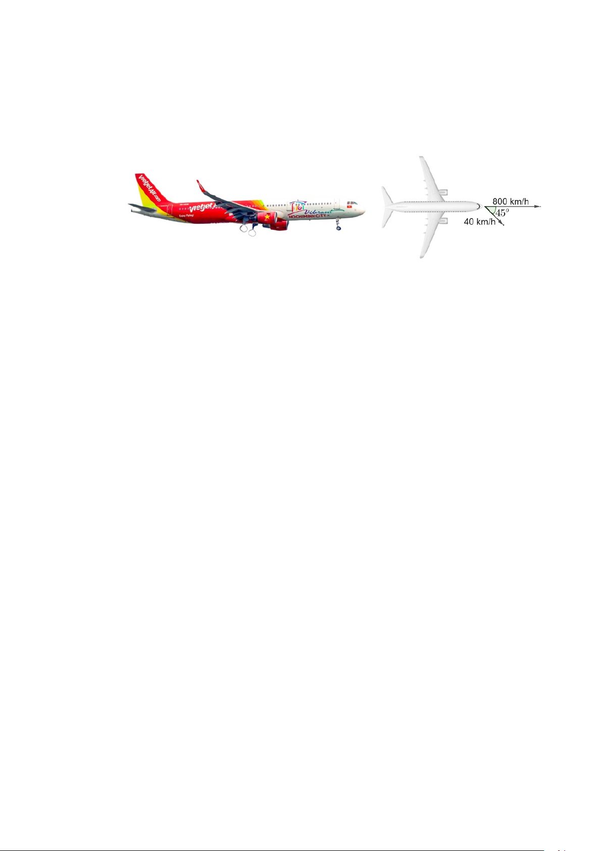 bay với tốc độ 800 km/h, sau 2 giờ bay thì gặp luồng gió thổi từ hướng Đông Bắc sang