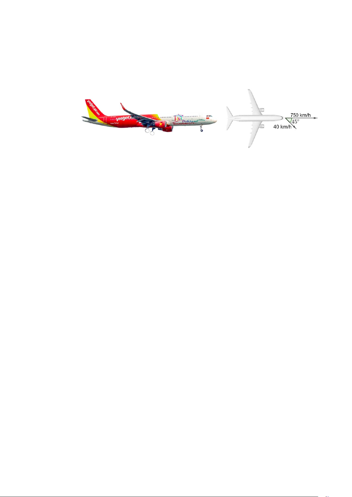 hướng Tây Nam với tốc độ 40 km/h. Máy bay bị thay đổi vận tốc sau khi gặp gió thổi. Tìm