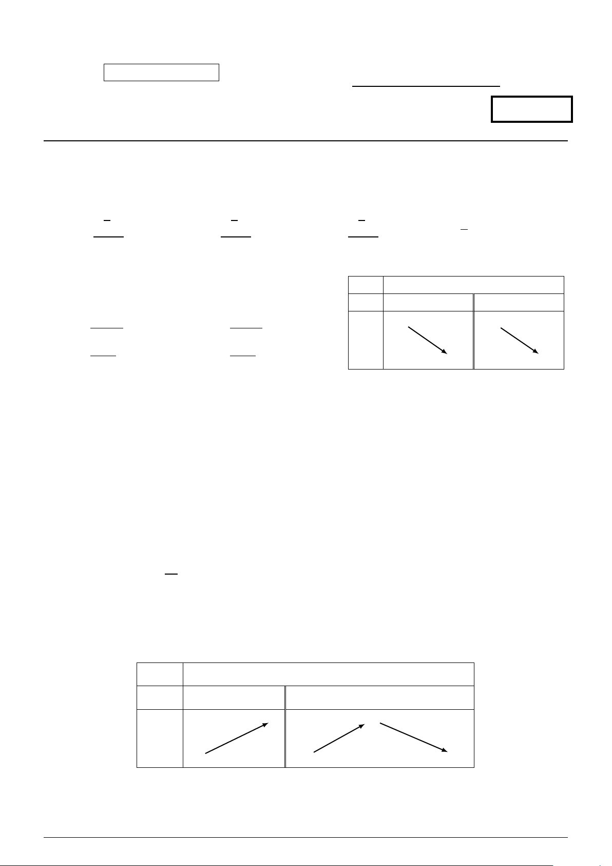 Bảng biến thiên ở hình bên là của hàm số x −∞ 2 +∞ nào? y′ − − 3 − x 4x − 6 +∞ A. 1 y = . B. y = . 2 − x x − 2 y 2x − 1 x + 5 C. y = . D. y = . x 1 + 3 x − 2 −∞
