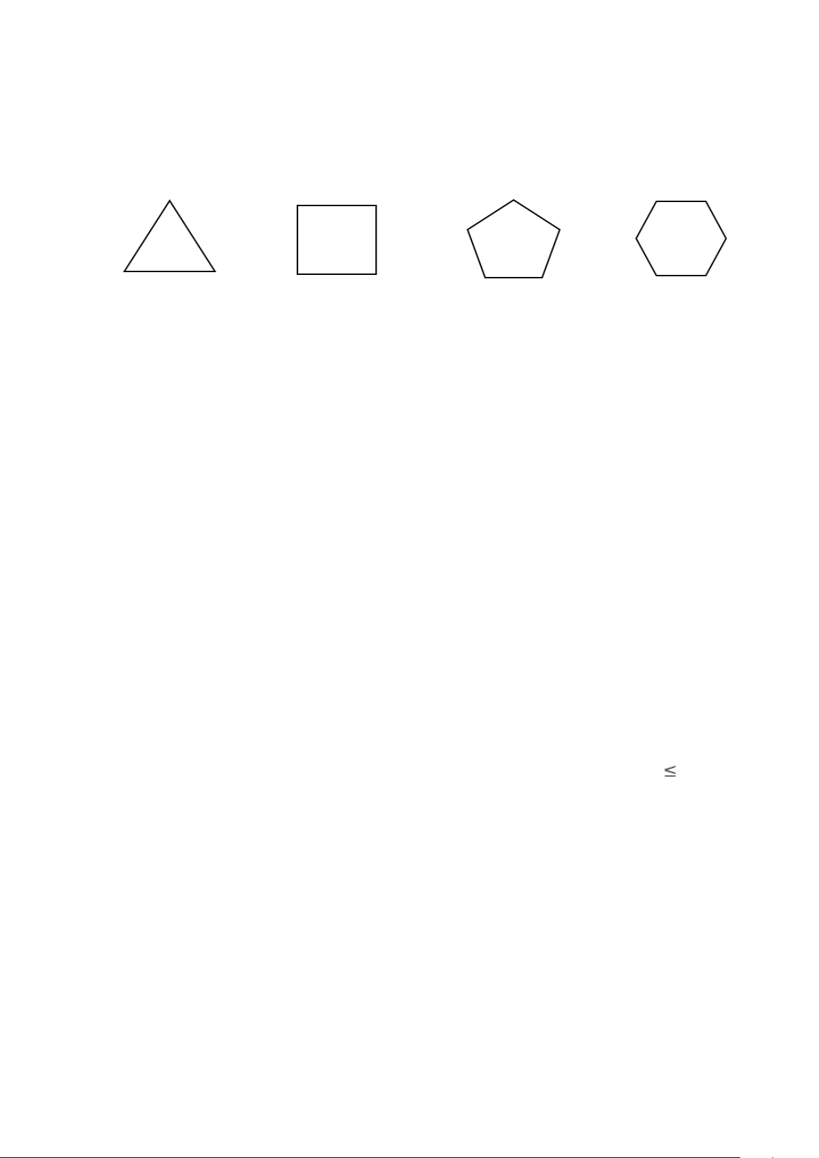 Câu 12. Trong các hình sau, hình nào là lục giác đều? Biết rằng các cạnh trong mỗi hình bằng nhau. A. Hình 1. B. Hình 2. C. Hình 3. D. Hình 4.