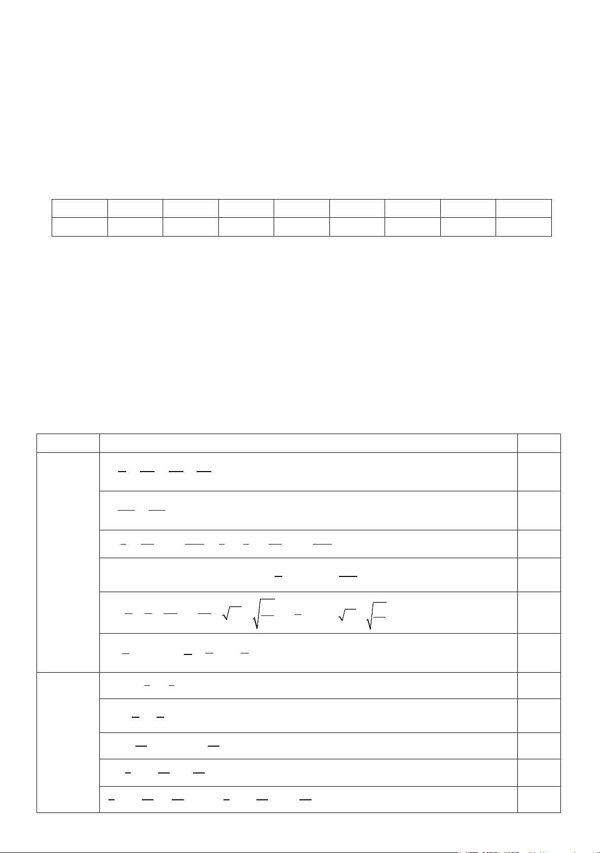 b) 1 . �−3� + �−13� . 1 = 1 . ��−3� + �−13�� 0,25 (1,5 4 8 8 4 4 8 8 1 −1 điểm) = 0,25 4 . (−2) = 2 2 2 c) 1 3 7 1 + − 1 : − − 25 16 = .16 0,25 3 8 12 16 − − 25 16 16 8 16 2 1 1 5 = .16 − − 5 4 = − 4 − = 5 − 0,25 8 4 4 4 a) 𝑥𝑥 + 1 = 1 7 2 13 1 1 𝑥𝑥 = 0,25 (1,0 2 − 7 điểm) . Vậy 𝑥𝑥 = 5 𝑥𝑥 = 5 . 0,25 14 14