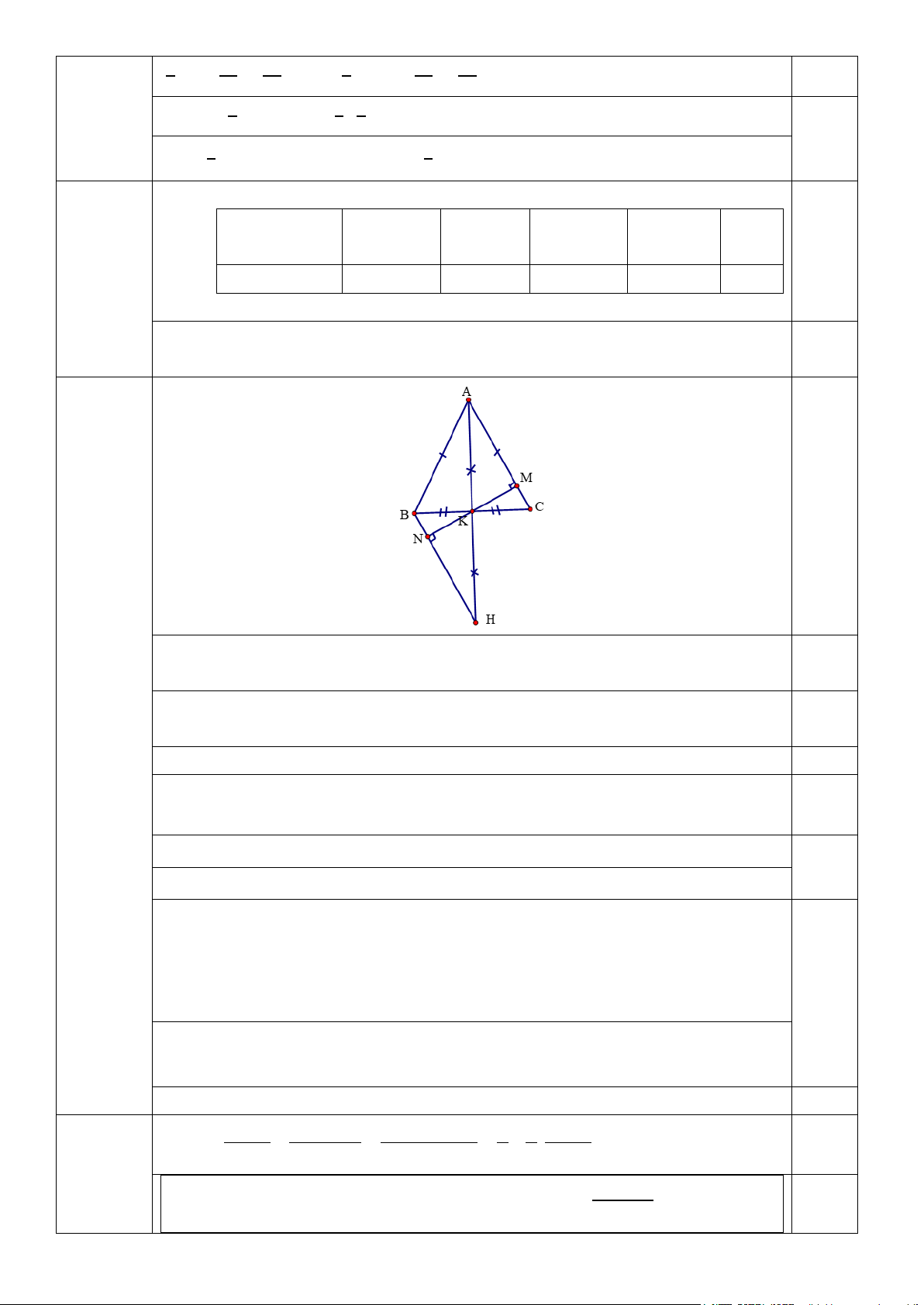 BK = KC ( K là trung điểm BC) 0,25 (2,0 AK là cạnh chung điểm) ∆ AKC = ∆ AKB (c.c.c) 0,25 ∆ AKC và ∆ HKB có 0,25 AK = KH; BK = KC; = BKH AKC