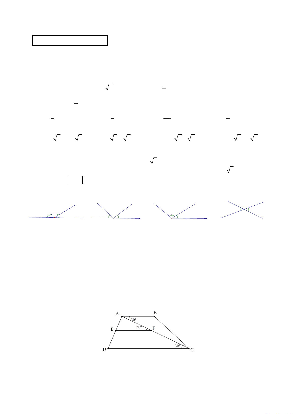 Câu 7: Hình nào có hai góc đối đỉnh? Hình 1 Hình 2 Hình 3 Hình 4 A. Hình 1. B. Hình 2. C. Hình 3. D. Hình 4.