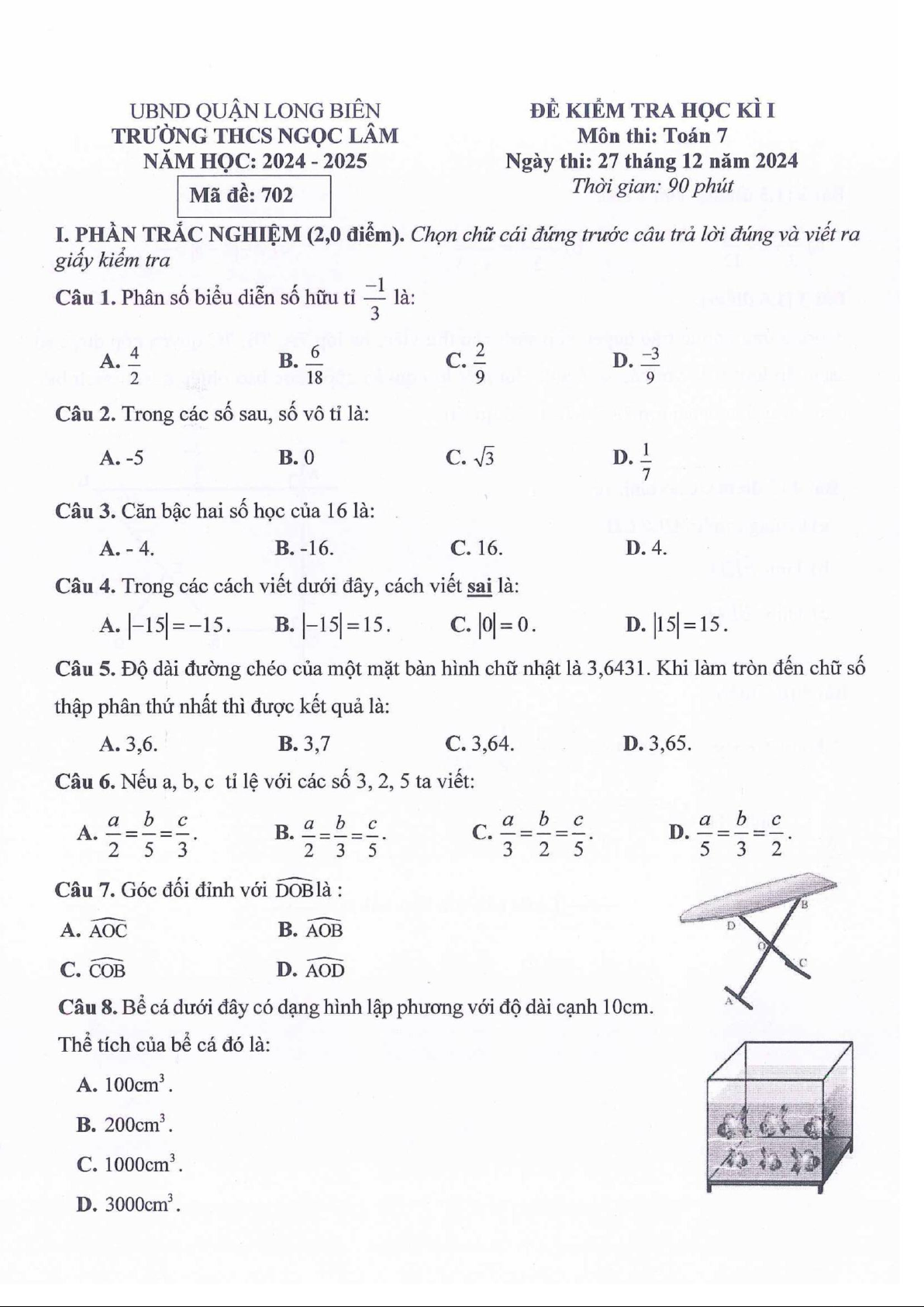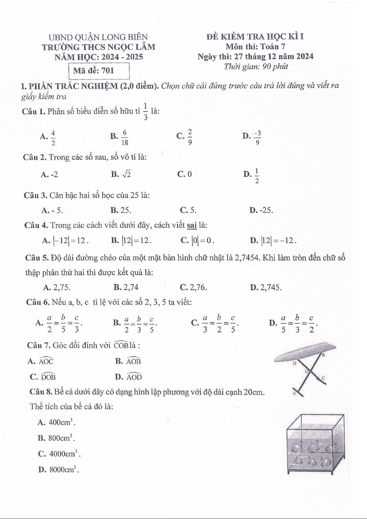 Giới thiệu đến quý thầy, cô giáo và các em học sinh lớp 7 đề kiểm tra cuối học kì 1 môn Toán 7 năm học 2024 – 2025 trường THCS Ngọc Lâm, quận Long Biên, thành phố Hà Nội. Kỳ thi được diễn ra vào ngày 27 tháng 12 năm 2024.