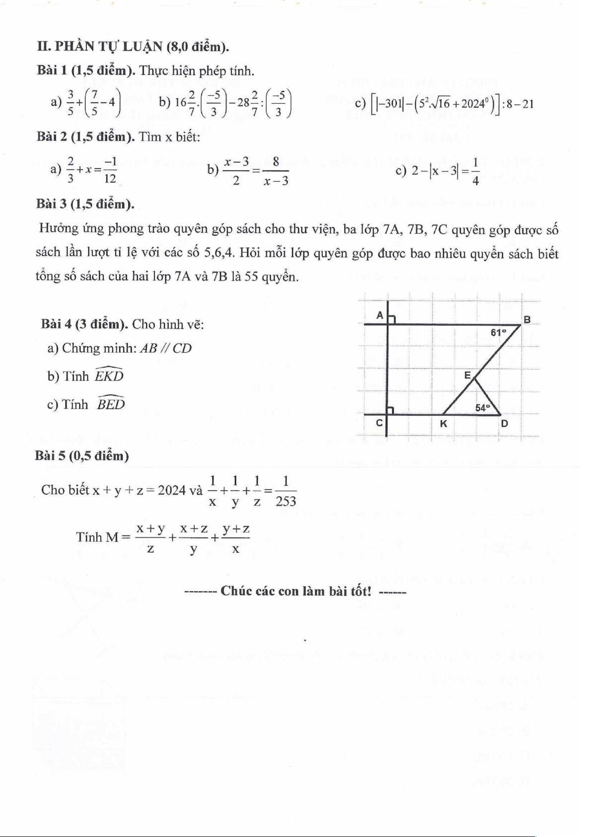 Đề cương cuối học kì 1 Toán 7 năm 2024 – 2025 trường Everest Schools – Hà Nội