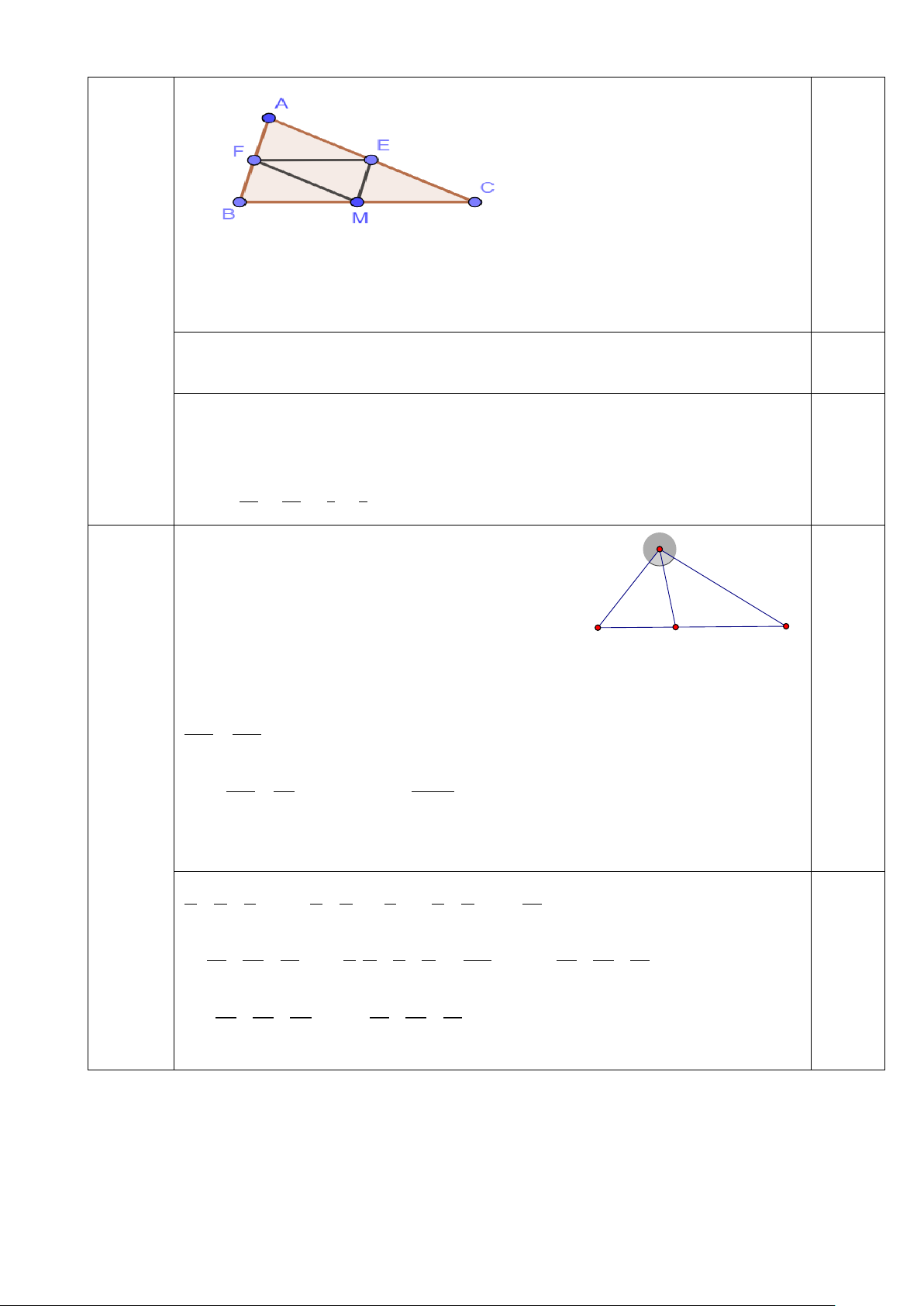 c) Ta có MB = MC và MF //AC suy ra F là trung điểm của AB, 0,5