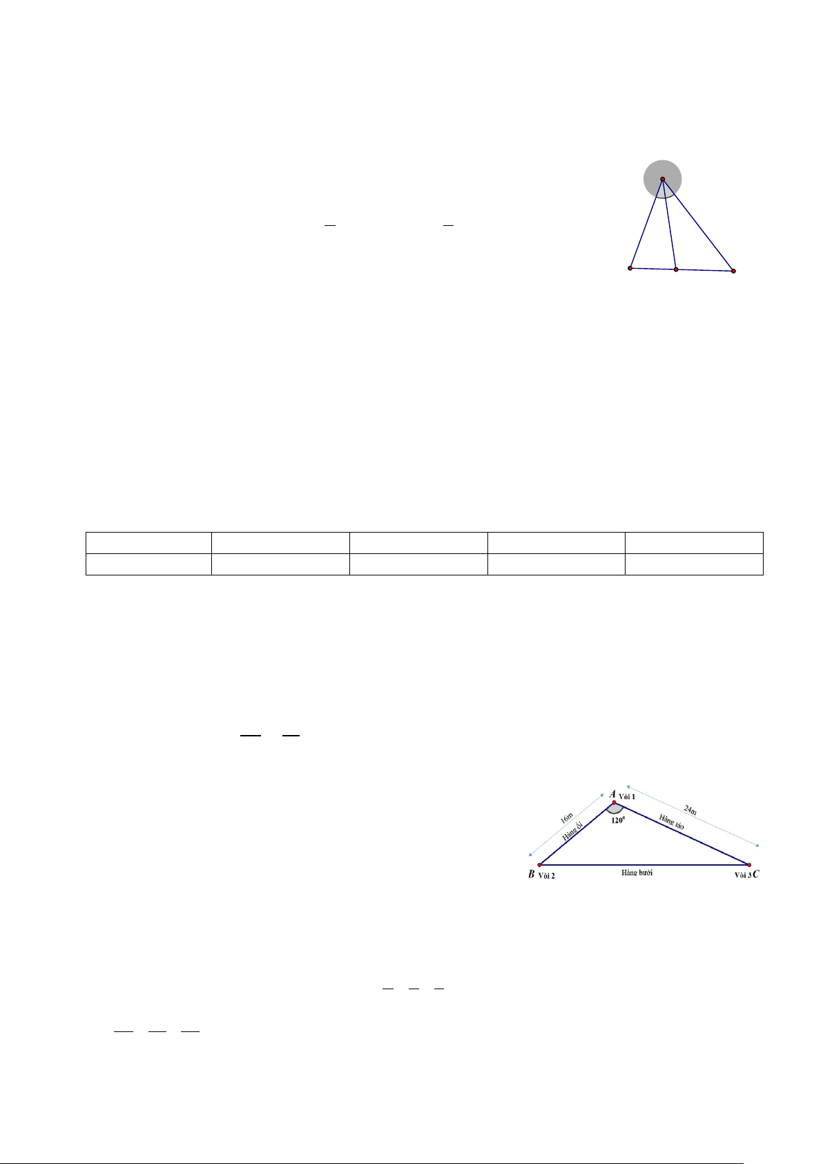 góc vườn 1100 với hàng bưởi). Theo TC đường phân giác của tam giác có: BD AB = CD AC Câu 17 1 điểm Hay 12 15 = Suy ra 12.20 CD = =16(m) CD 20 15 0,25