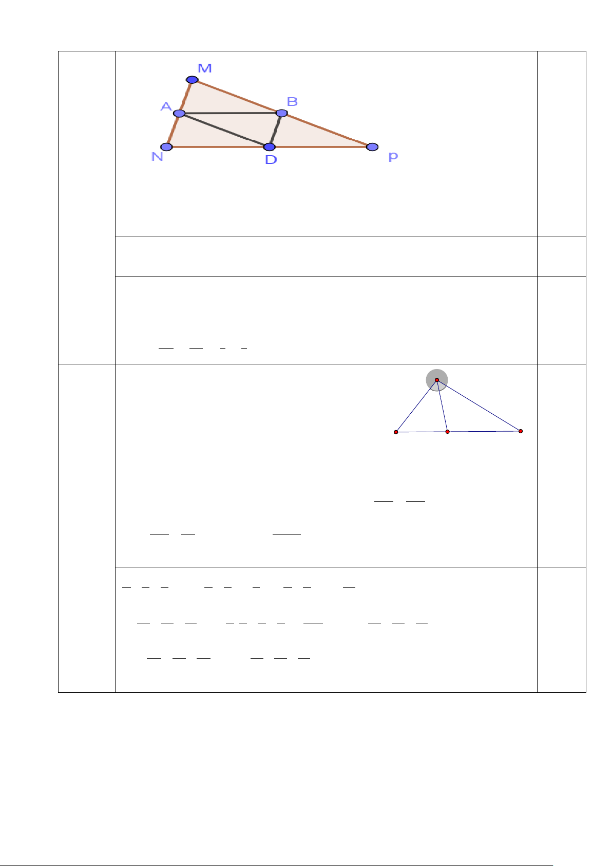 c) Ta có ND = NP và DA //MP suy ra A là trung điểm của MN, 0,5