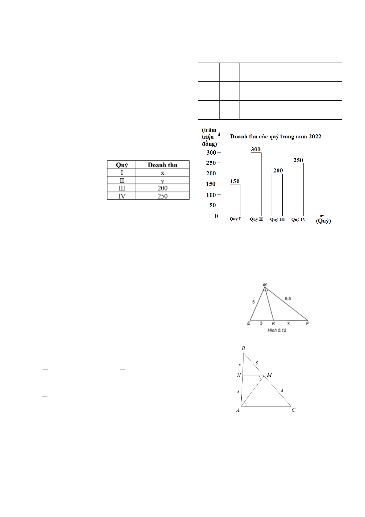 Câu 13. Biểu đồ dưới đây cho biết doanh thu của