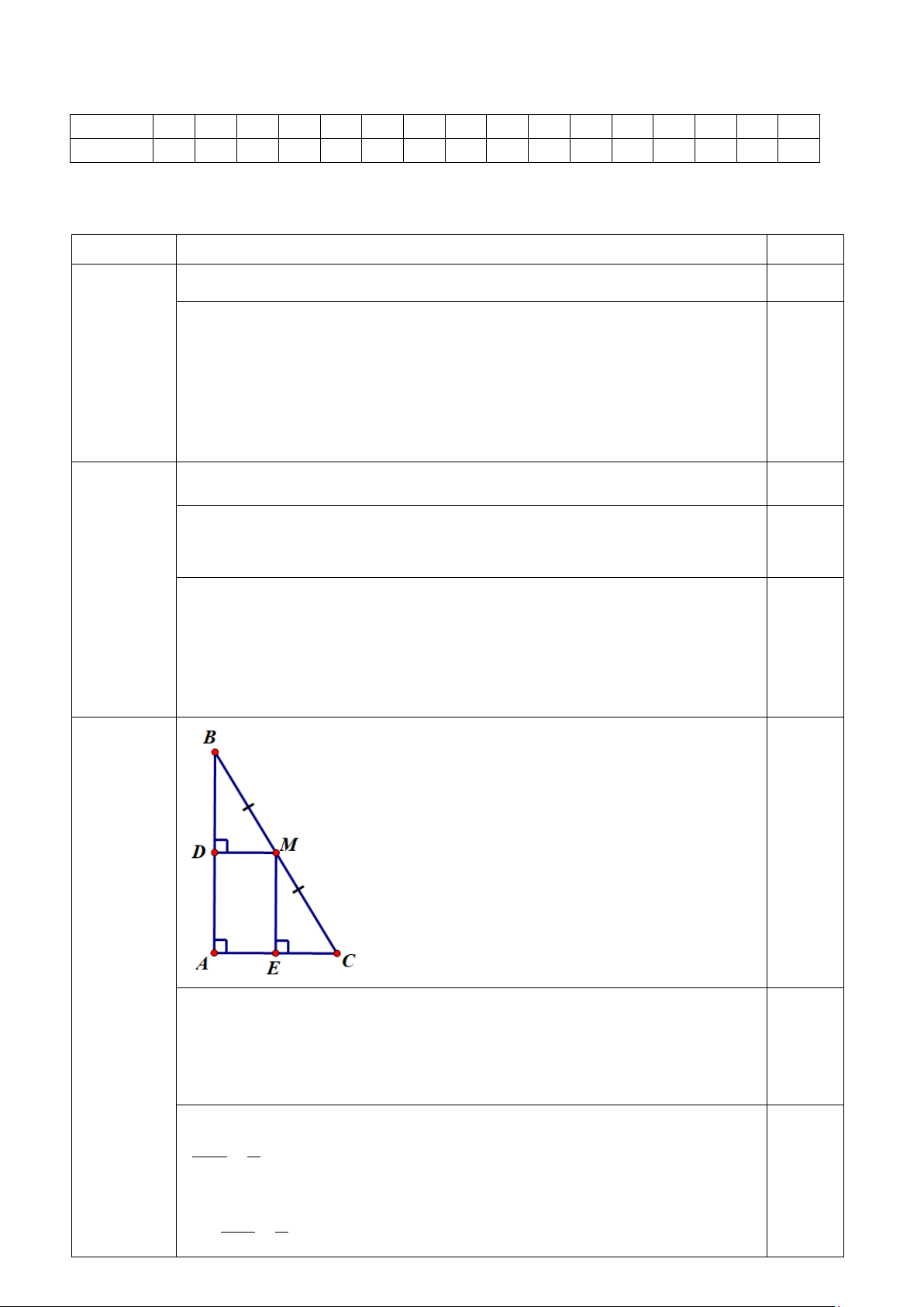 Suy ra x = 0 hoặc x = 1. 0,25đ 0,25đ 3 (2 điểm) + Chứng minh: DM//AC. 0,25đ