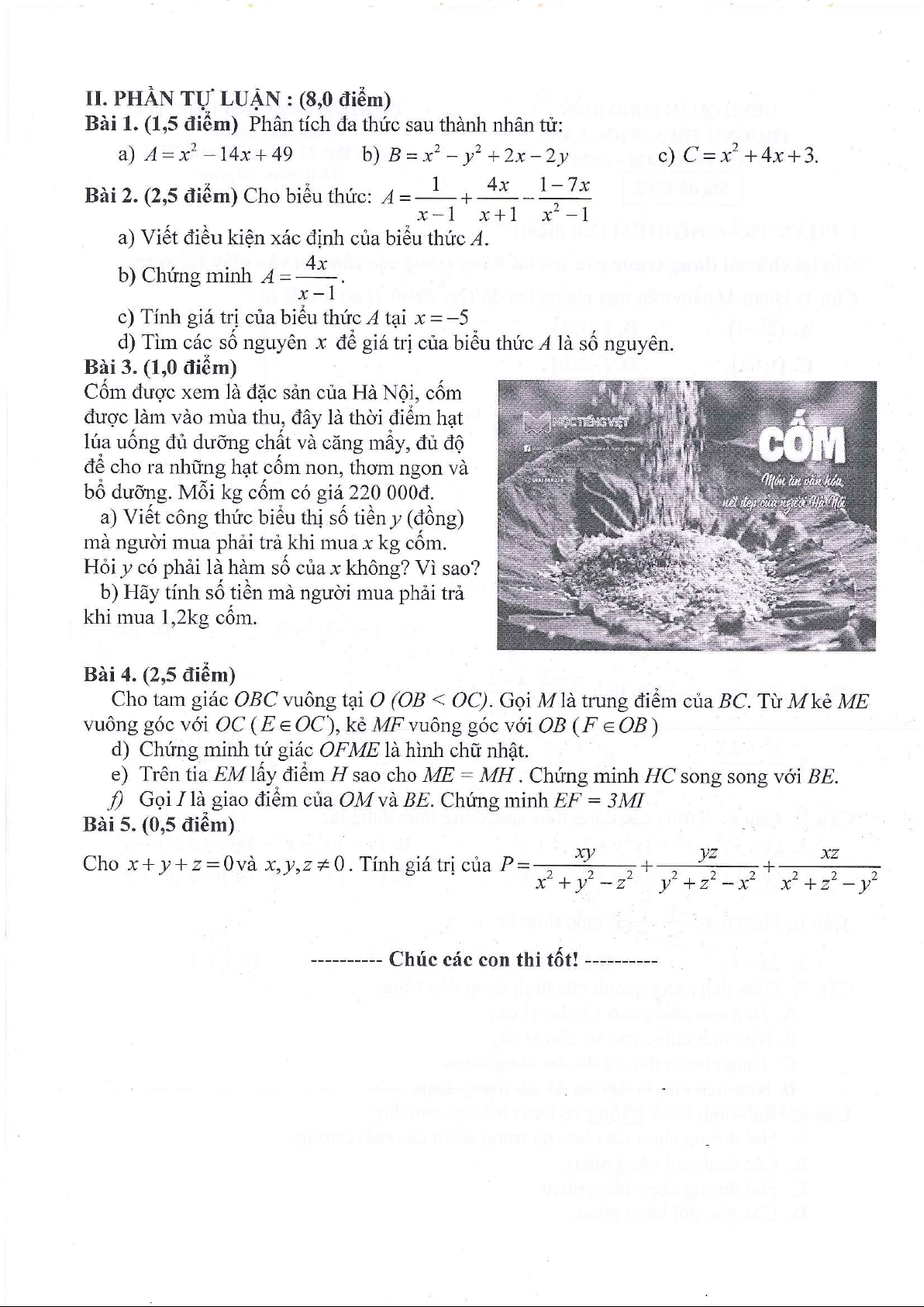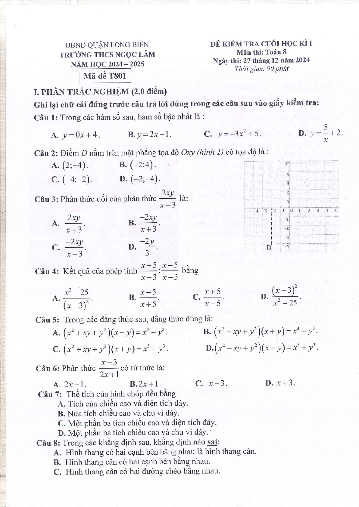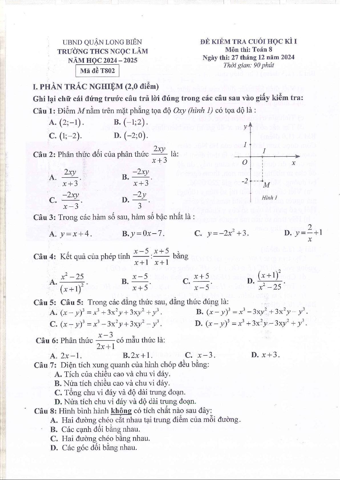 Đề cuối học kì 1 Toán 8 năm 2024 – 2025 trường THCS Ngọc Lâm – Hà Nội