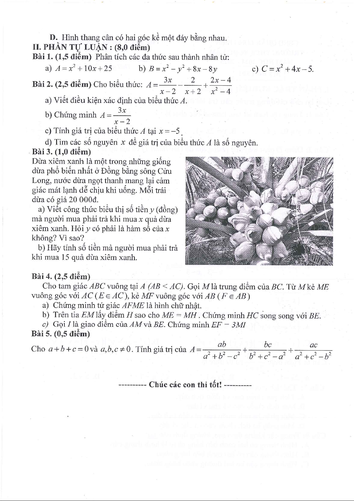 Đề tham khảo cuối kỳ 1 Toán 8 năm 2024 – 2025 phòng GD&ĐT Thủ Đức – TP HCM