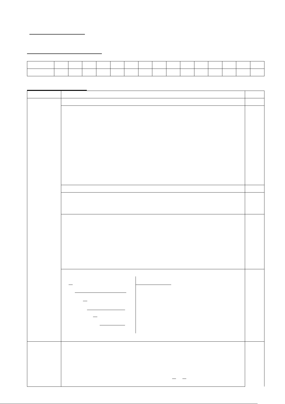 Mỗi câu trả lời đúng được 0,2 điểm x 15 = 3 điểm. Câu 1 2 3 4 5 6 7 8 9 10 11 12 13 14 15