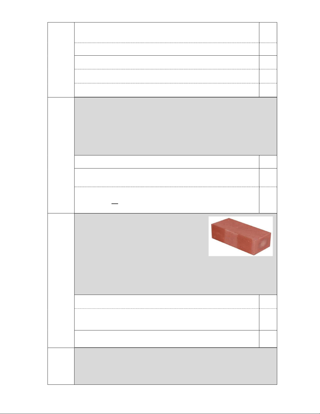 Bài 4 (1,0 điểm). Gạch đặc nung là loại gạch được làm