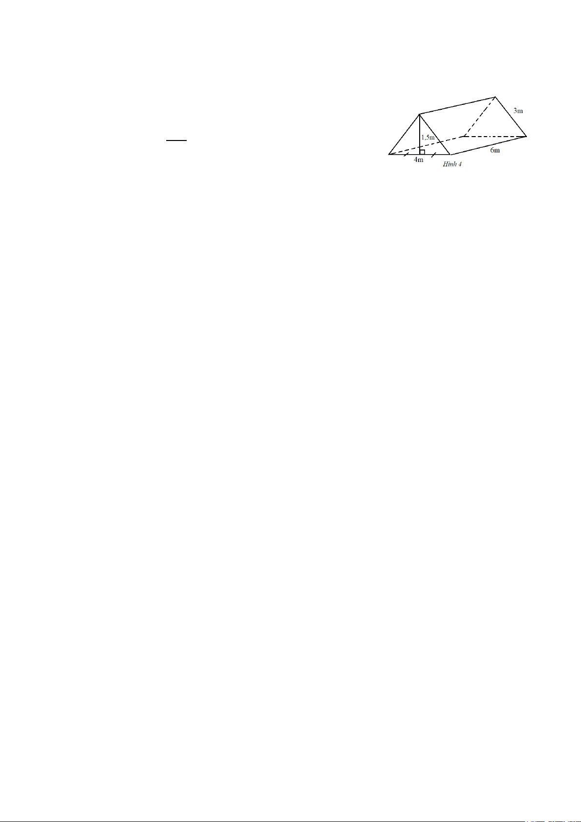 b) Một lều chữ A dạng của hình lăng trụ đứng tam giác trong hình 4. Tình diện tích của vải