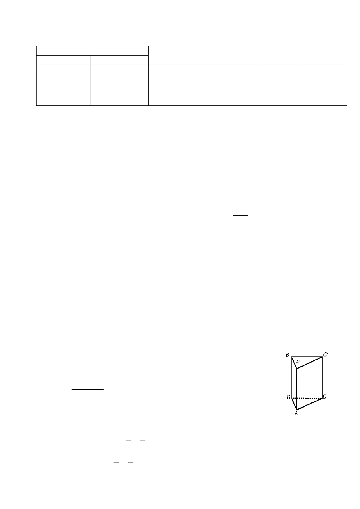 Lăng trụ đứng tam giác, lăng trụ đứng tứ 2 1 15% giác. (TN11;12) (TL16b) 0,5 1đ Tổng 12 2 4 2 1 21 câu Tỉ lệ phần trăm 40% 30% 20% 10% 100 Tỉ lệ chung 70% 30% 100