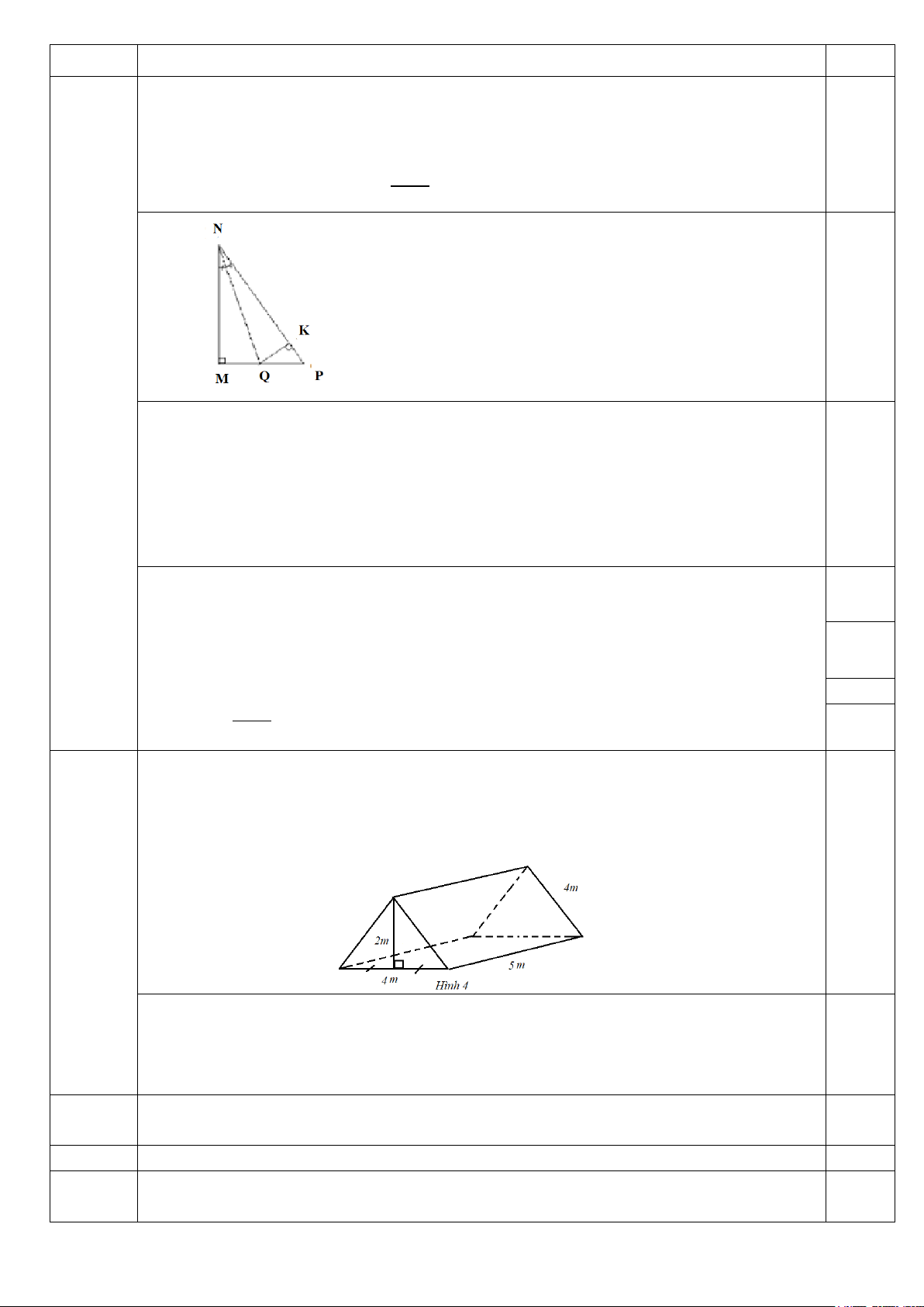 b) vì Δ MQN = Δ KQN => QM = QK ( hai cạnh tương ứng) 0,25 => ΔMQK cân tại Q.