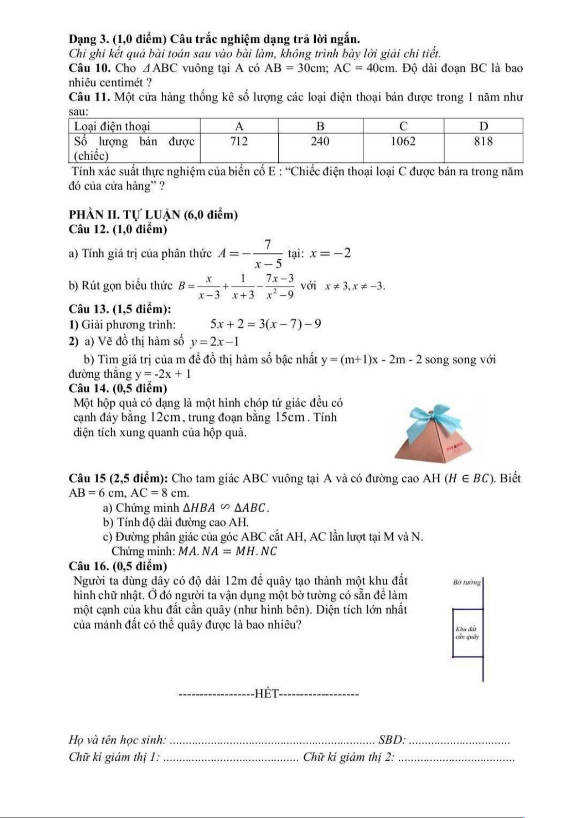 Đề cuối học kì 2 Toán 8 năm 2024 – 2025 trường THCS An Lạc – TP HCM
