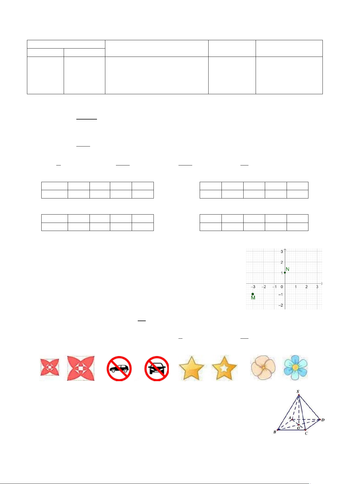 - + Câu 14b: Lập bảng điền đúng mỗi giá trị ghi 0,5 điểm.