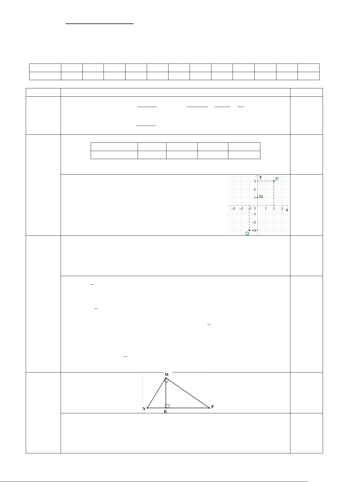 b) Xác định điểm P(2; 3); Q(-1; -3); M(0; 1) trên mặt phẳng toạ độ Oxy.  Câu 15: (2,0 điểm)