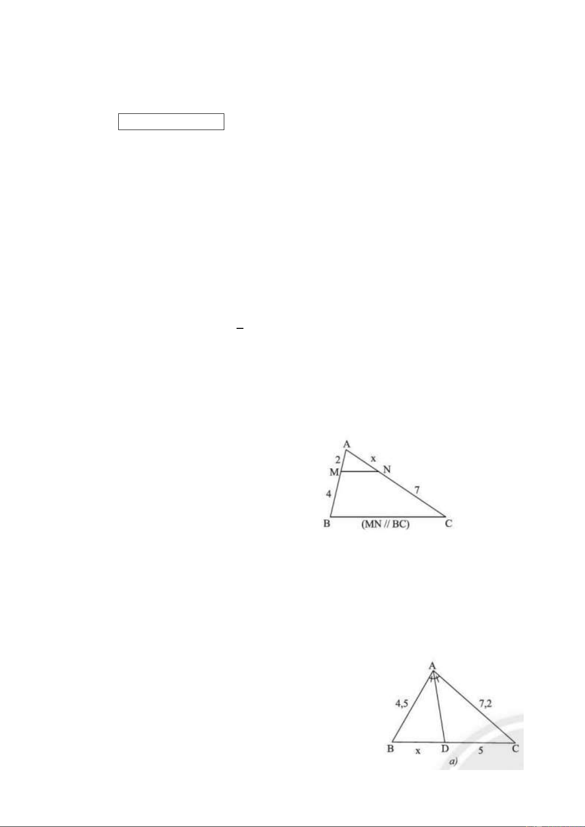 Câu 7: Tìm x trong hình 5.    A. x = 4,5.    B. x = 3,5.  C. x = 3.      D. x = 4.