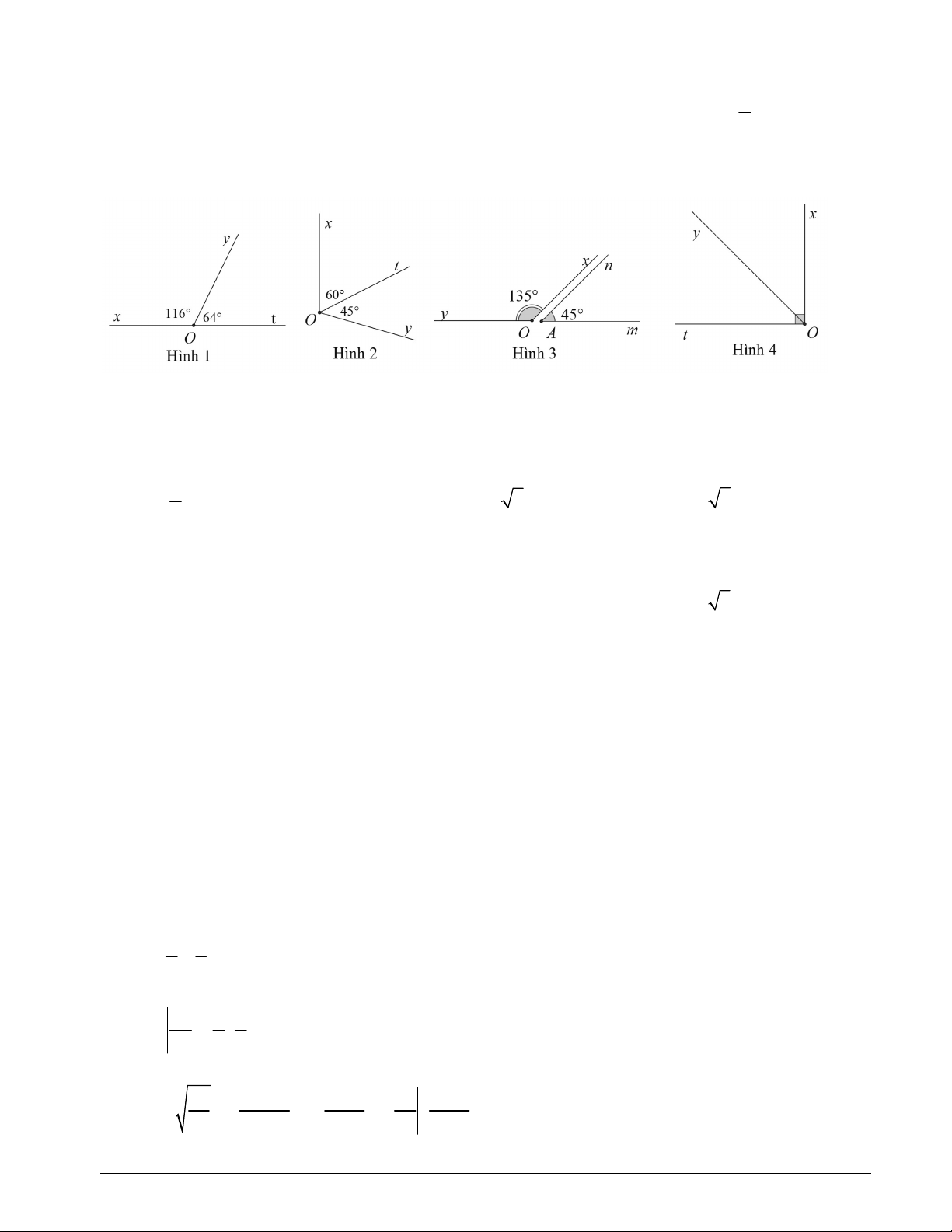 Câu 8: Trong các hình vẽ sau. Hình nào có hai góc kề bù? A. Hình 1. B. Hình 2. C. Hình 3. D. Hình 4.