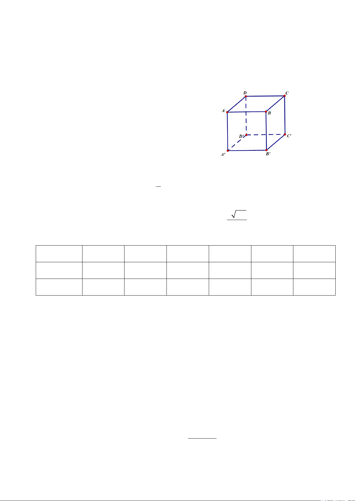 Câu 1. Cho hình lập phương ABC . D A′B C ′ D