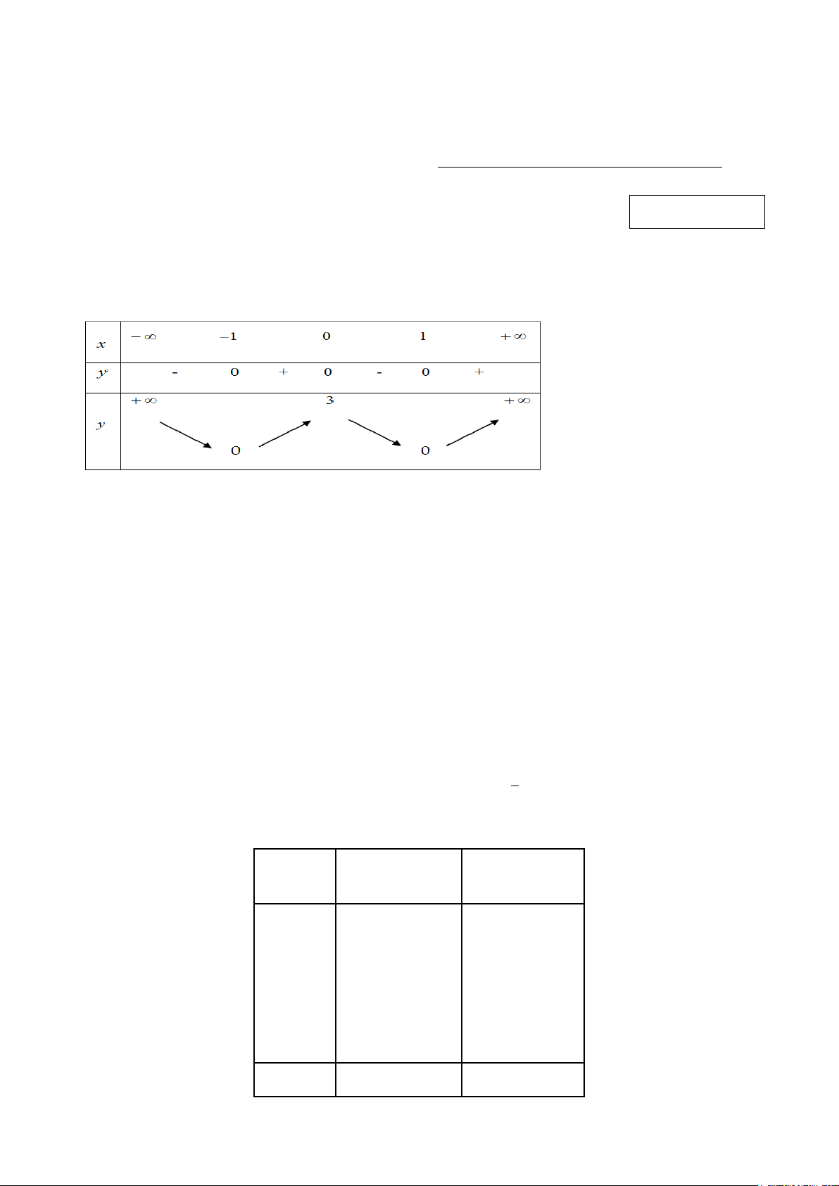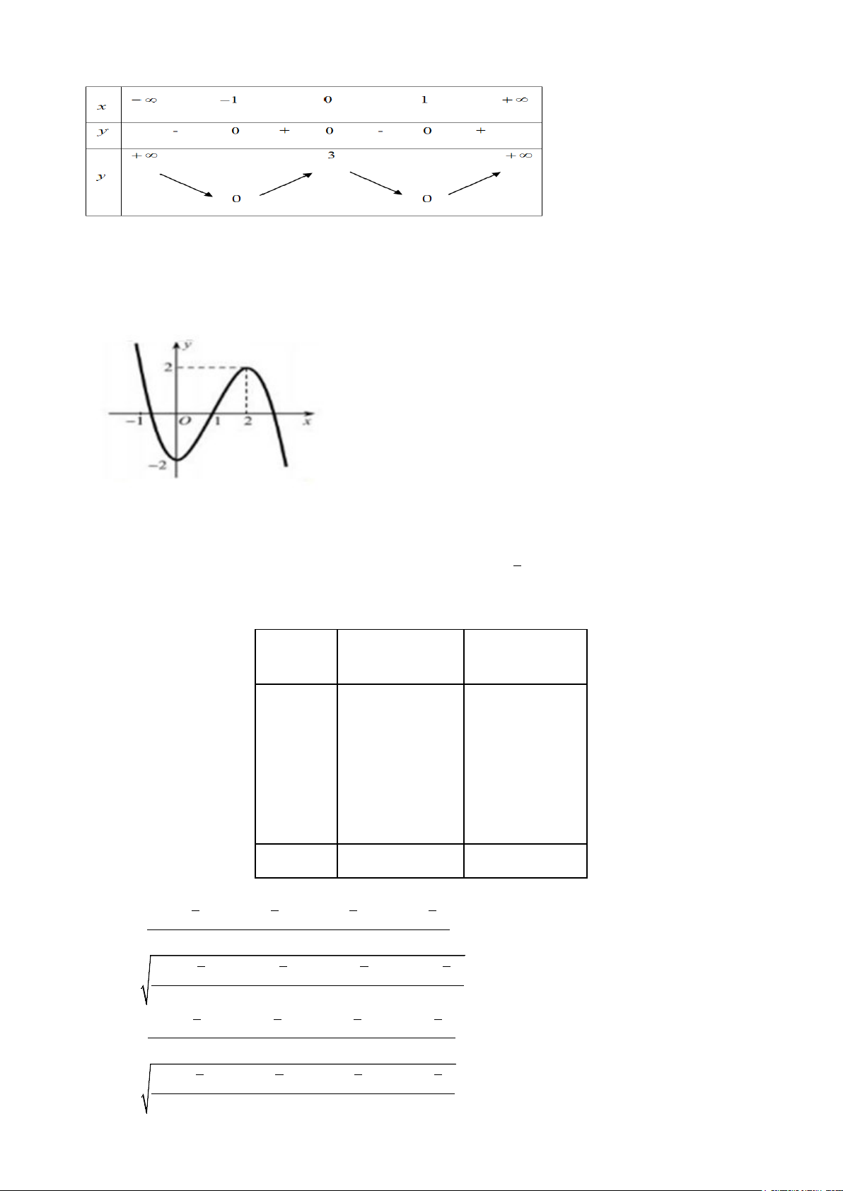 Câu 1: Cho hàm số y = f (x) có bảng biến thiên như sau