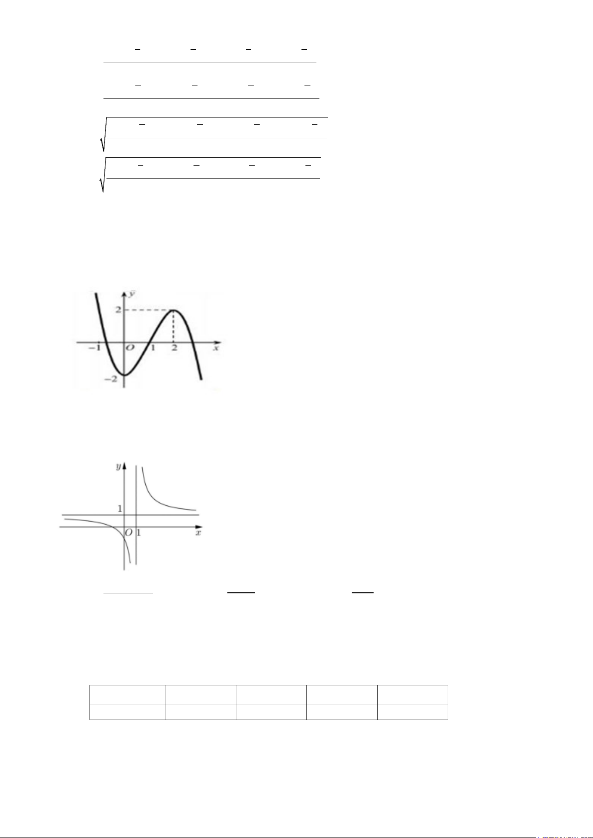 Câu 1: Đường cong trong hình vẽ bên là đồ thị của hàm số nào dưới đây? 2 A. 3 + − + − y x 2x 1 x x = x − 3x −1 B. y = C. 1 y = D. 2 1 y = x −1 x −1 x −1 −