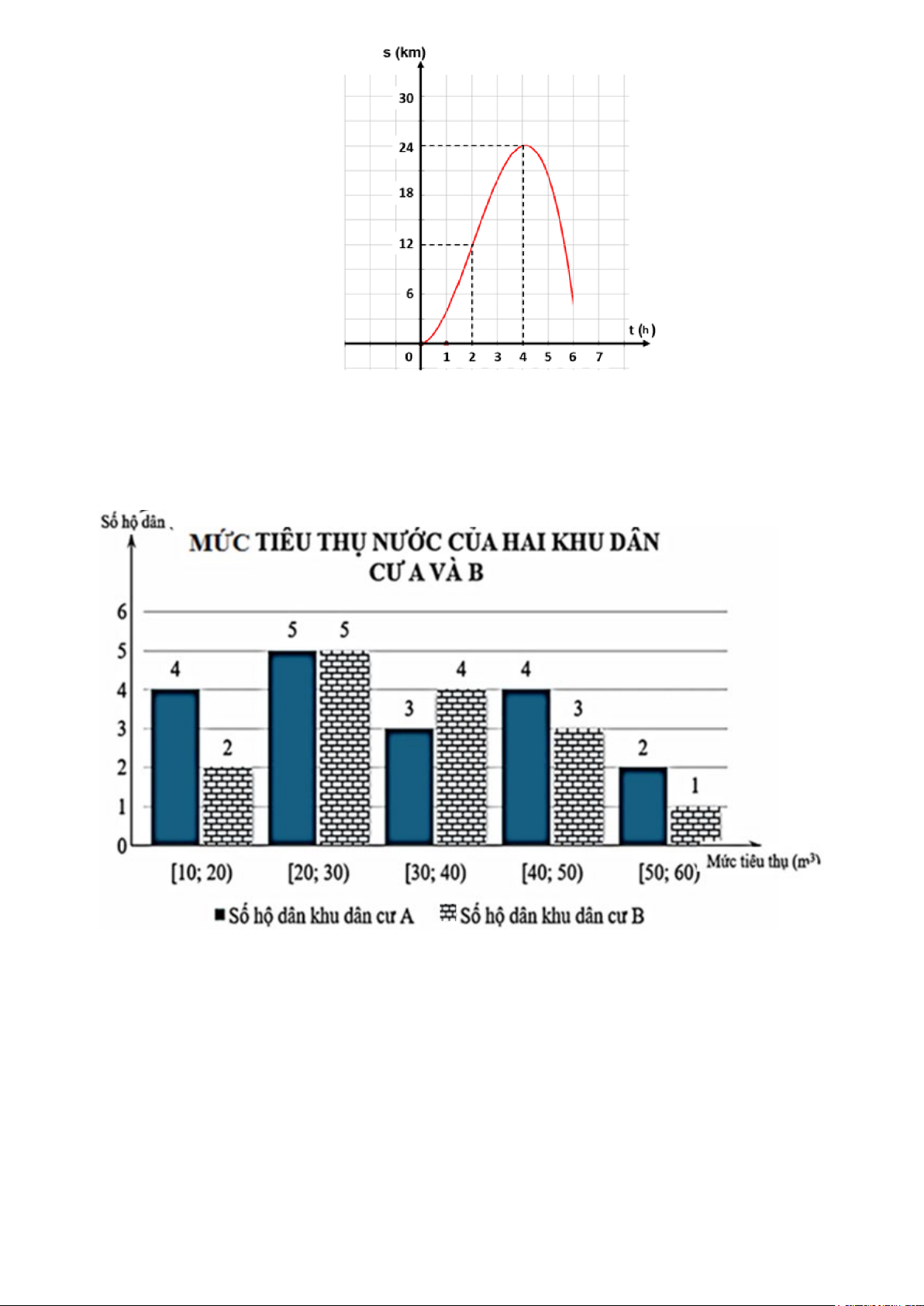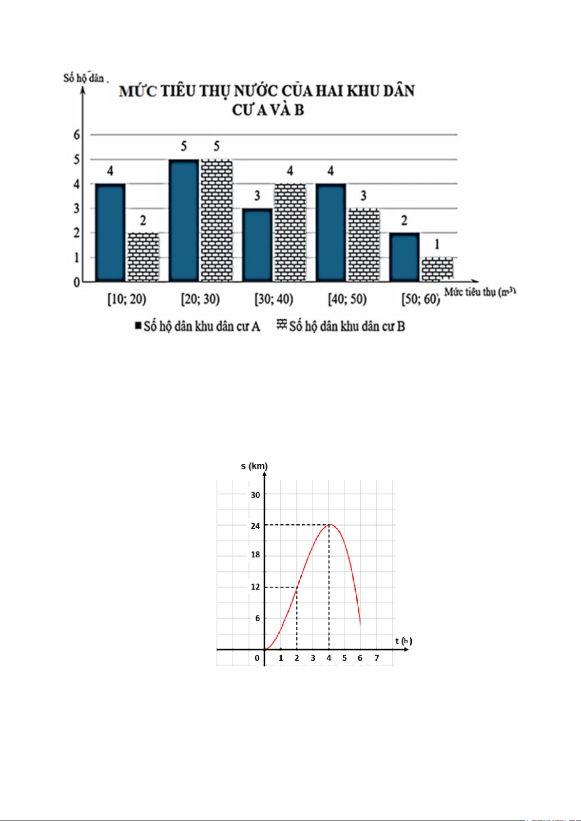 Câu 2: Biểu đồ sau mô tả kết quả điều tra về mức tiêu thụ nước hàng tháng của hai khu dân cư A và B . Gọi S S