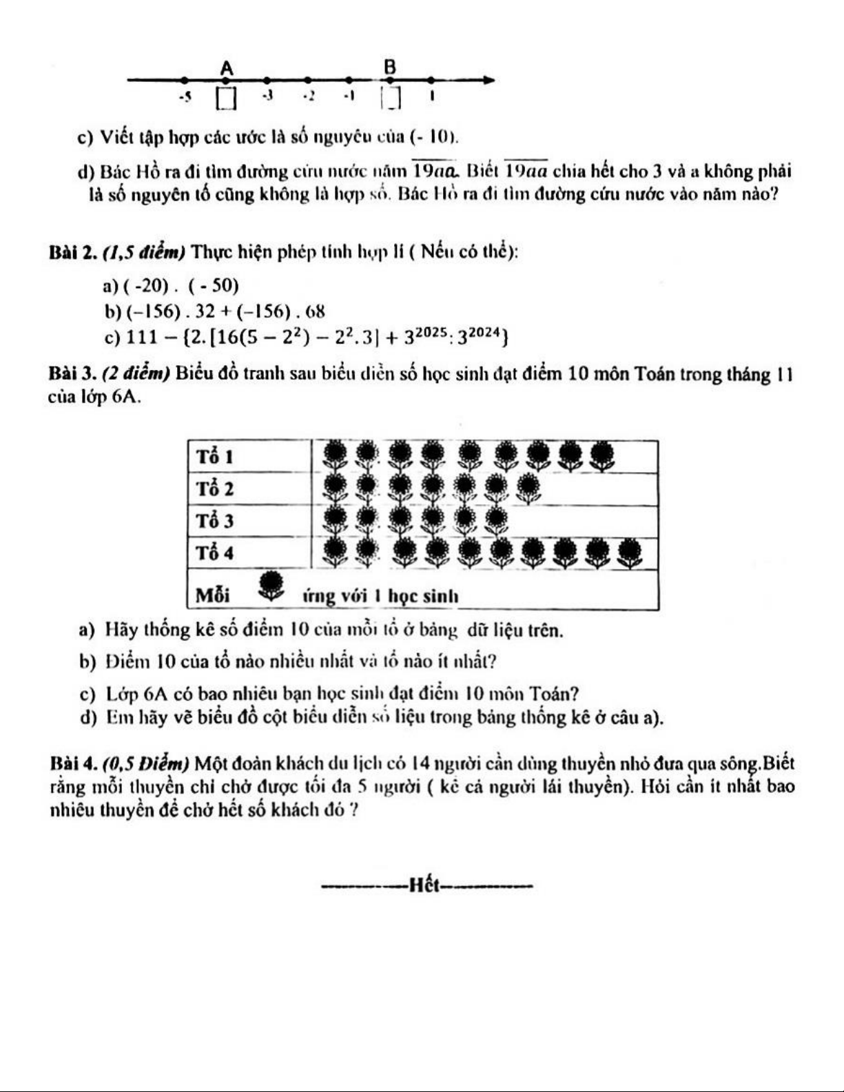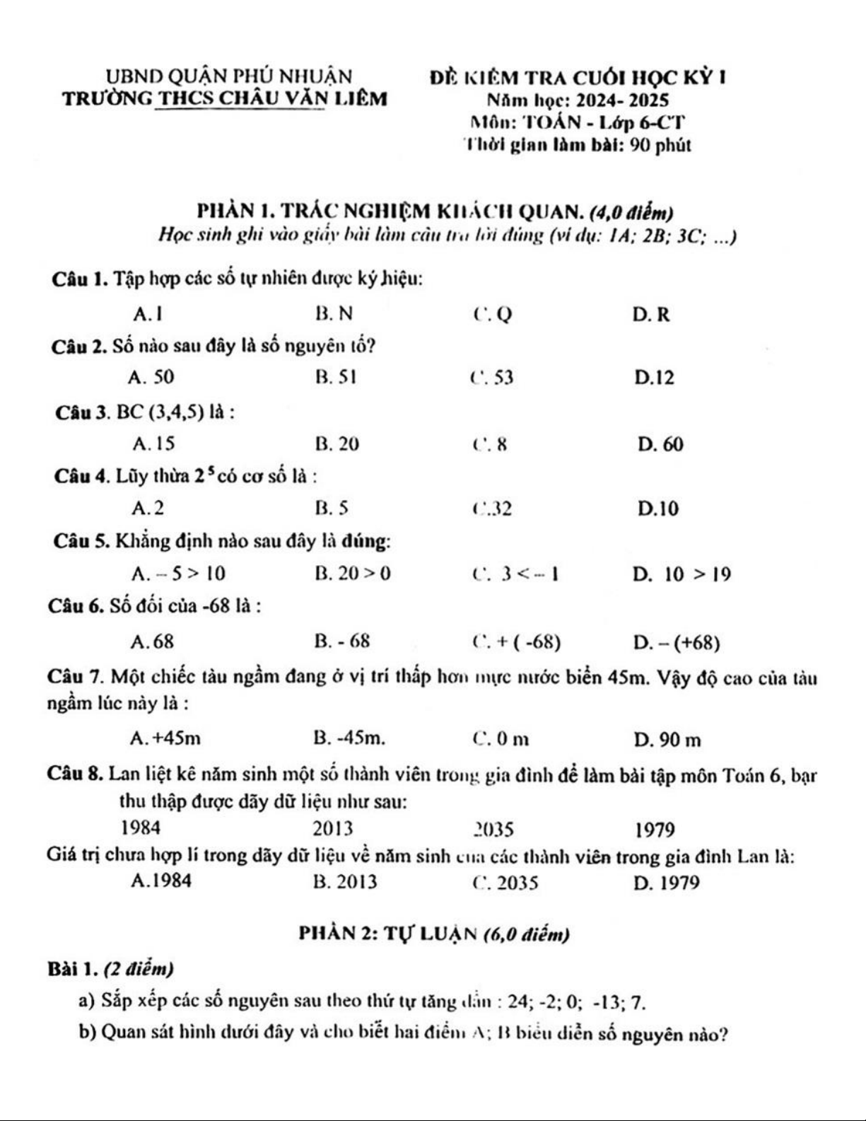Đề cuối học kỳ 1 Toán 6 năm 2024 – 2025 trường THCS Châu Văn Liêm – TP HCM