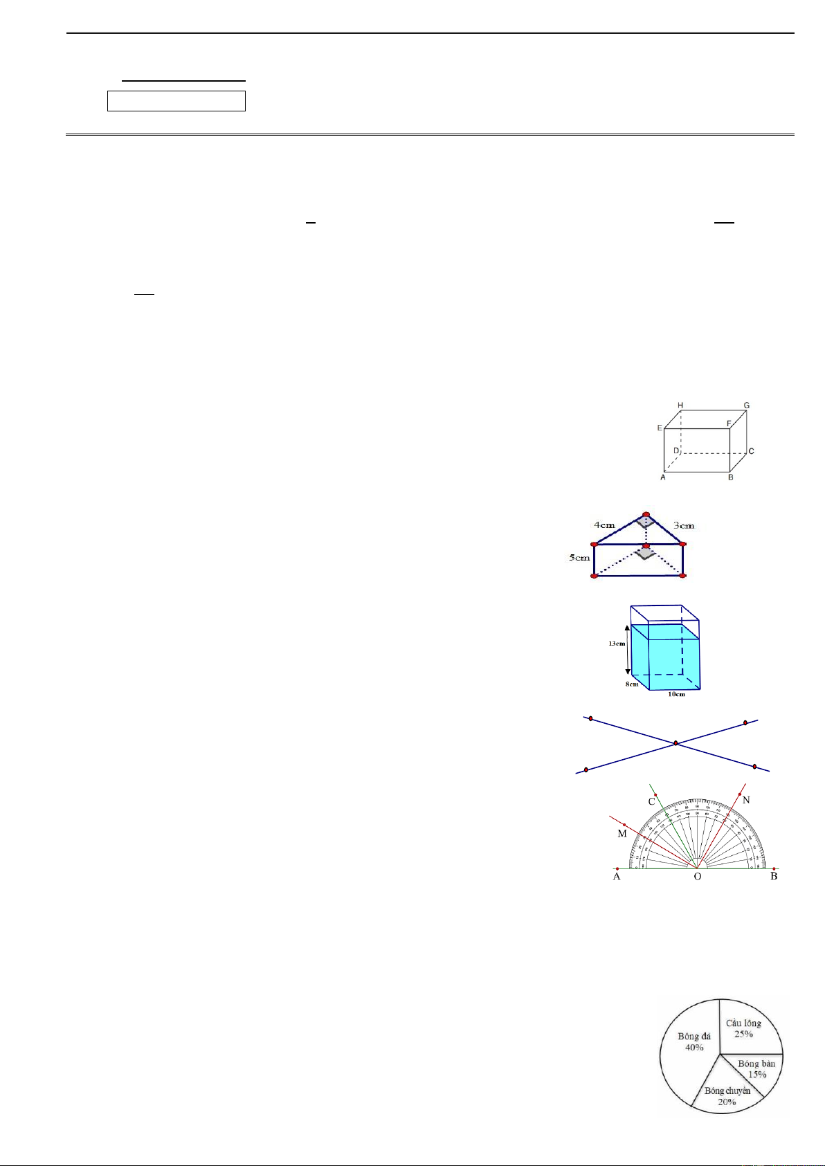 Câu 7: Thể tích nước trong bể cá hình hộp chữ nhật (hình bên) là bao nhiêu?