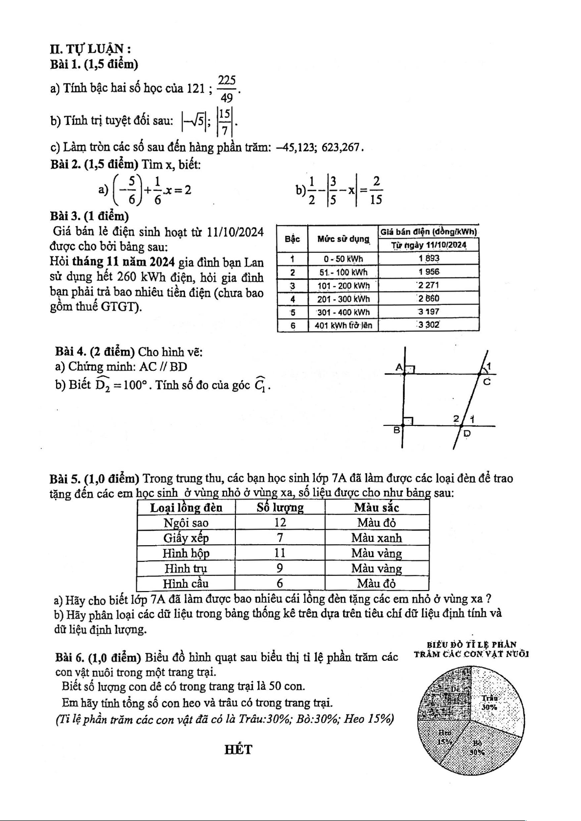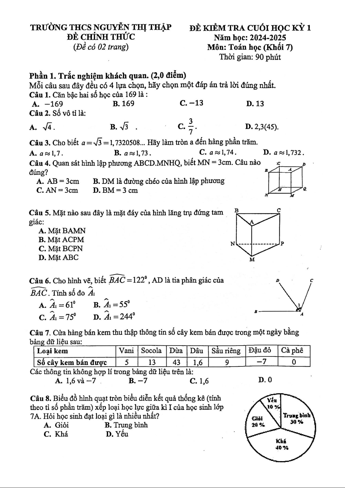 Đề cuối học kỳ 1 Toán 7 năm 2024 – 2025 trường THCS Nguyễn Thị Thập – TP HCM