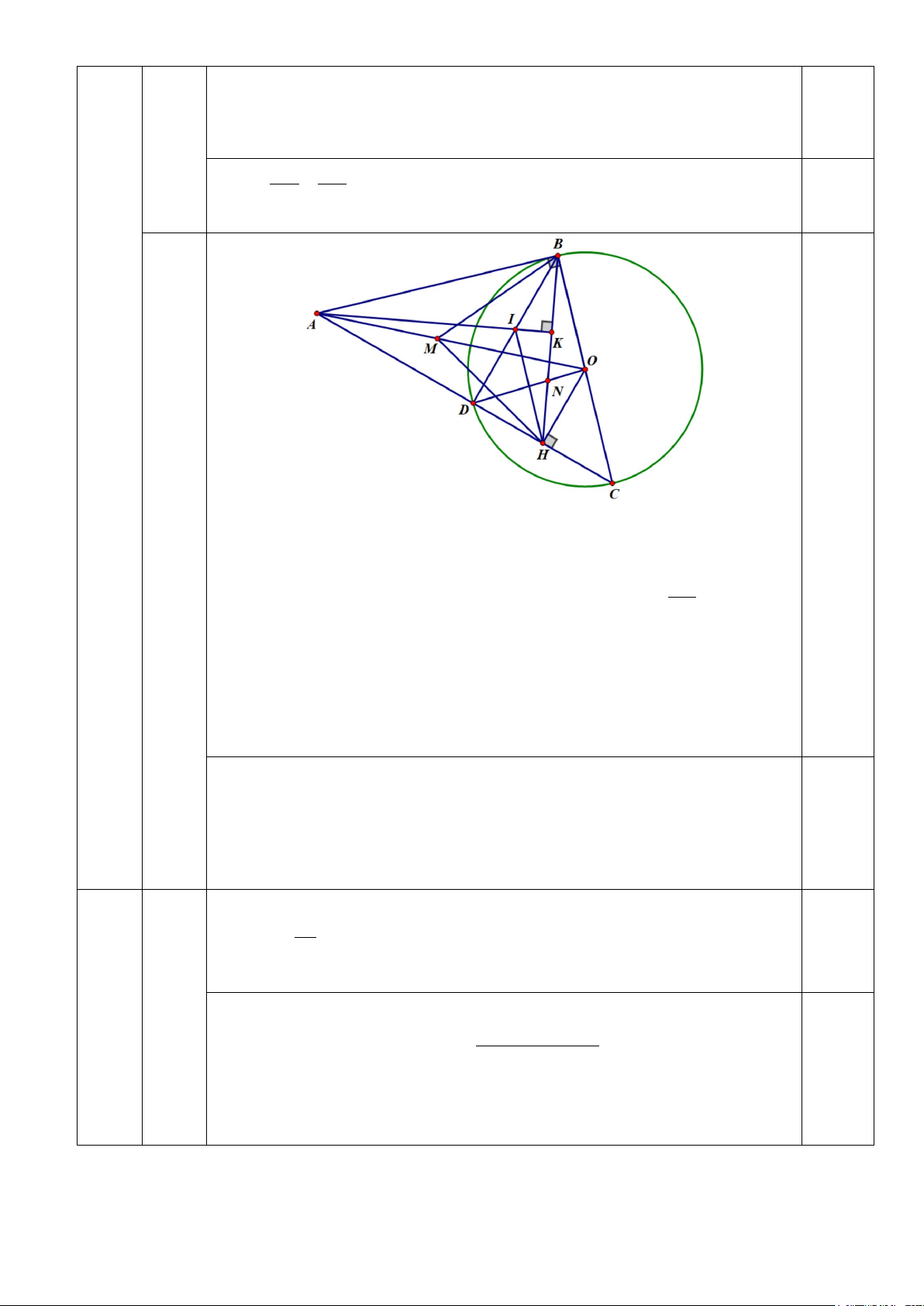 điểm) Vì AB là tiếp tuyến của (O) nên AB ⊥ OB . Suy ra ABO=90° 0,5 Do đó AB ∆ O vuông tại B. AB ∆