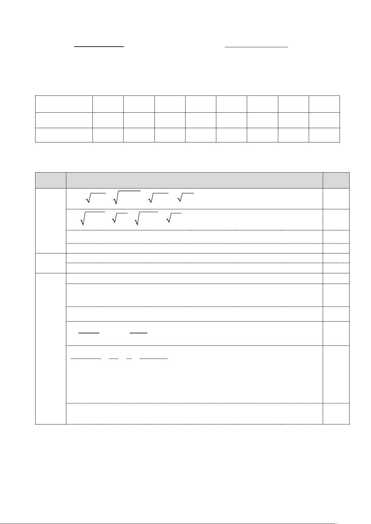 ra ngoài dấu căn bậc hai, đưa thừa số vào trong dấu căn bậc hai). Tổng số câu 2 0 2 0 0 1 0 0 5 Tổng số điểm 0.50 0.00 0.50 0.00 0.00 0.50 0.00 0.00 1.50