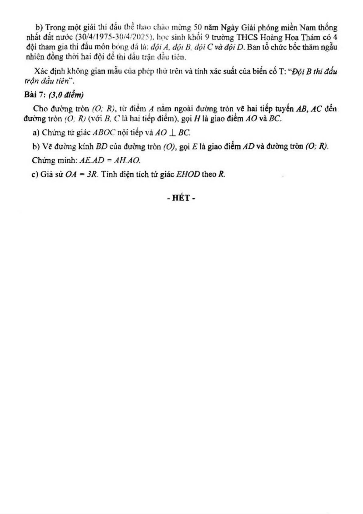 Đề cuối học kỳ 2 Toán 9 năm 2024 – 2025 trường THCS Hoàng Hoa Thám – TP HCM